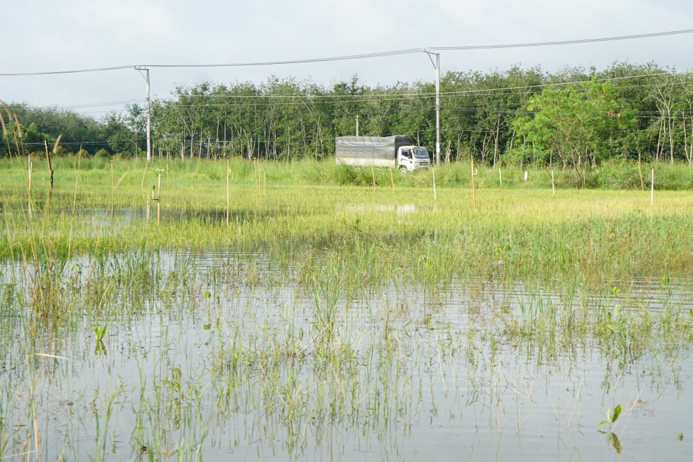 در امتداد جاده استانی ۷۹۳، در امتداد کمون تان فو، برخی از مزارع برنج که در شرف برداشت هستند، از بالای خوشهها آب گرفتهاند. در برخی نقاط، خوشهها هنوز از بالای آب قابل مشاهده هستند، اما مقدار آن زیاد نیست، بنابراین مالکان مجبورند مزارع را رها کنند و برای برداشت، کارگر یا ماشینآلات استخدام نکنند.