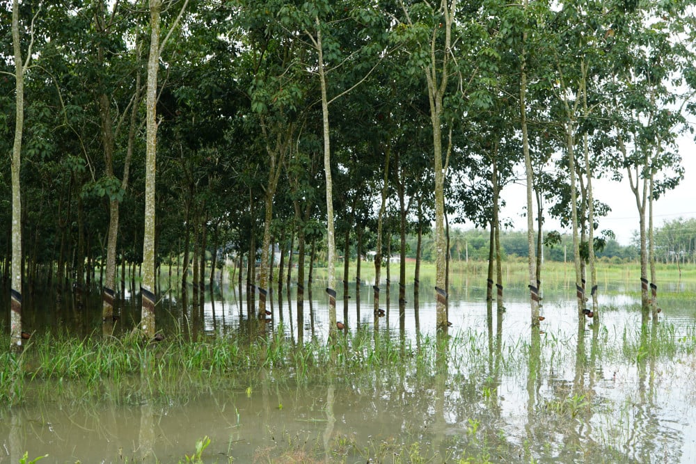 در زمان برداشت لاتکس، یک مزرعه کائوچو وجود دارد که بیش از نیم متر، تقریباً تا فنجانهای لاتکس، غرقاب میشود. کارگران مجبورند آبشخورهای خود را زمین بگذارند، برداشت لاتکس را موقتاً متوقف کنند و منتظر فروکش کردن آب بمانند.