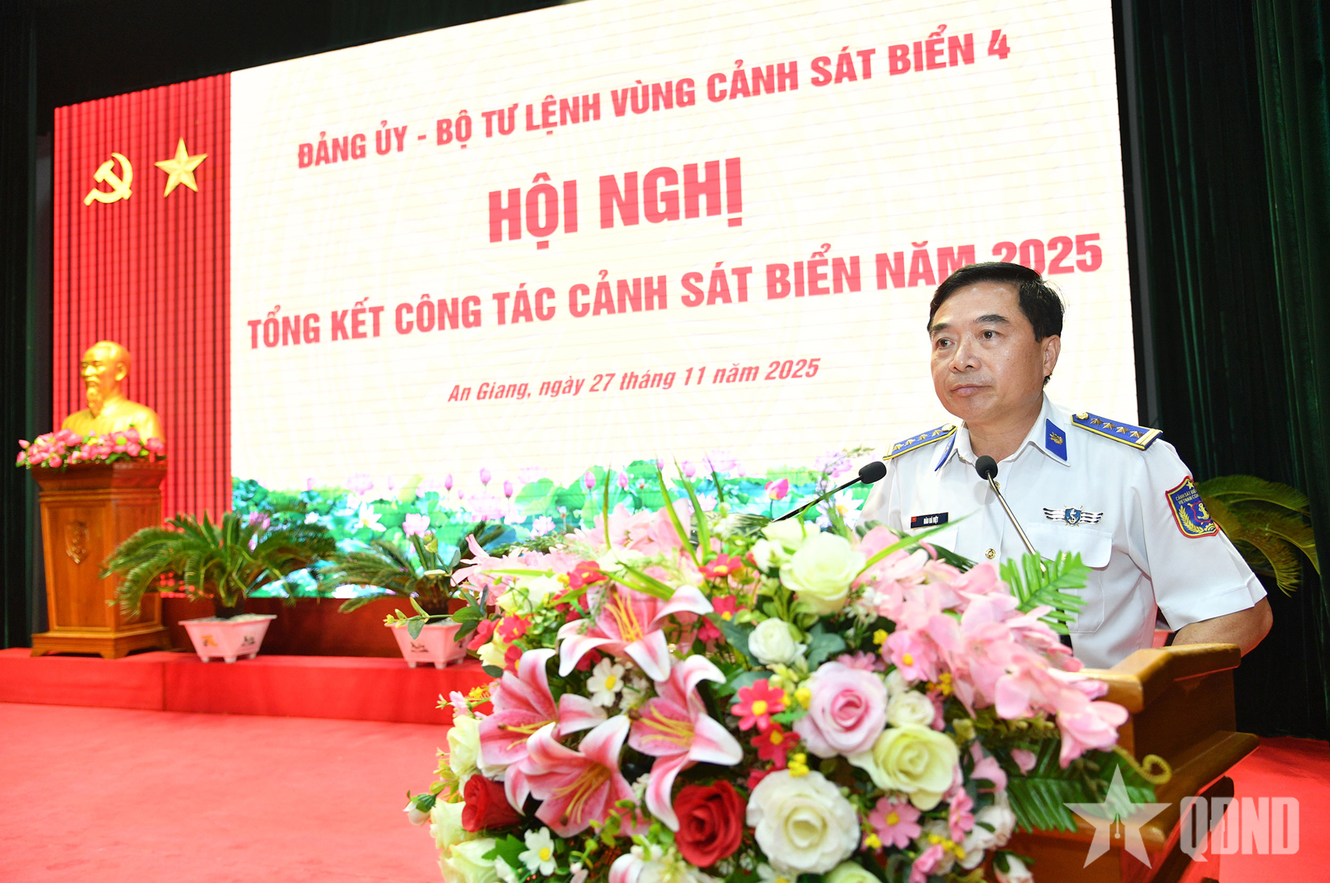 | Le colonel Dao Ba Viet, commandant de la région 4 des garde-côtes, a présidé la conférence visant à examiner le travail des garde-côtes en 2025. |