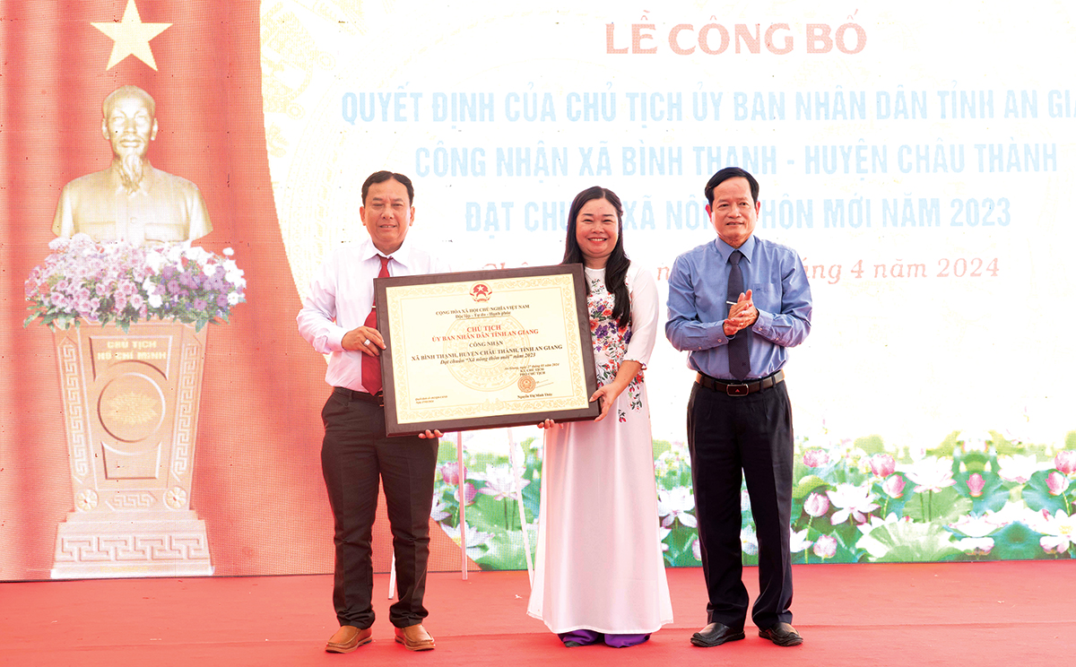 Do Tan Kiet, membre du Comité permanent du Parti provincial, vice-président du Conseil populaire provincial d'An Giang, a présenté la décision du président du Comité populaire provincial d'An Giang reconnaissant la commune de Binh Thanh comme répondant aux nouvelles normes rurales en 2023.