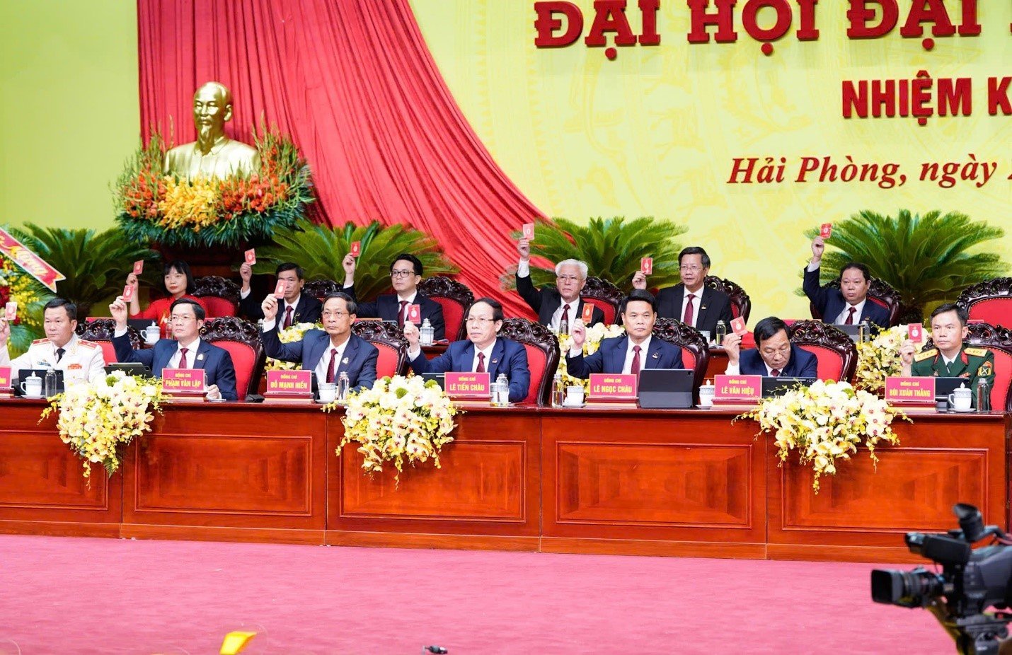 Le Congrès remercie respectueusement les dirigeants, les anciens dirigeants du Parti et de l'État ; les dirigeants des provinces et des villes voisines ; les forces armées, les révolutionnaires vétérans, les anciens dirigeants de Hai Phong-Hai Duong à travers les périodes ; et tous les cadres, les membres du Parti, le monde des affaires, les intellectuels, les artistes, les dignitaires religieux et les personnes de tous les horizons - y compris les habitants de Hai Phong vivant, travaillant et étudiant dans tout le pays, qui ont apporté leur enthousiasme, leur intelligence et leur responsabilité, apportant une contribution importante au succès du Congrès.