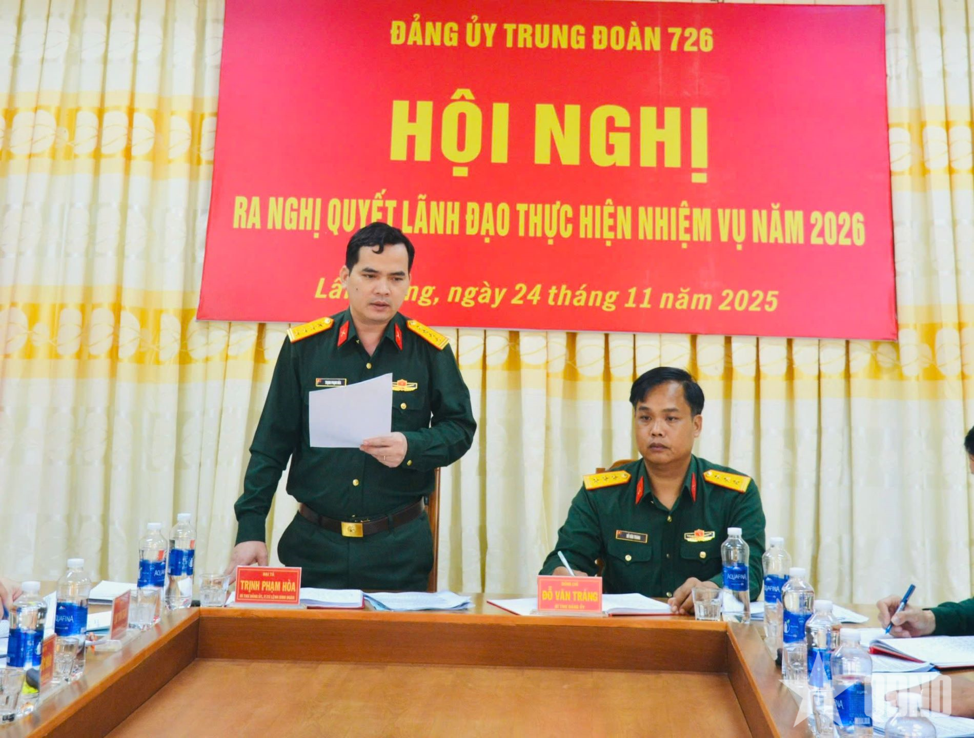 En 2026, le Comité du Parti du Régiment 726 a décidé de continuer à bien diriger la mise en œuvre des tâches militaires et de défense ; de gérer efficacement et en toute sécurité la production et les affaires ; de mener efficacement le travail de mobilisation de masse et les politiques de soutien militaire ; de coopérer étroitement avec les comités du Parti, les autorités et les populations ethniques des zones stationnées, créant ainsi une force combinée dans la mise en œuvre des tâches politiques et le développement socio-économique.
