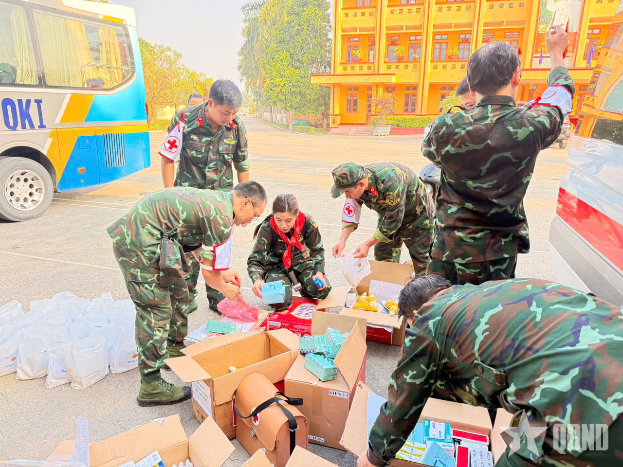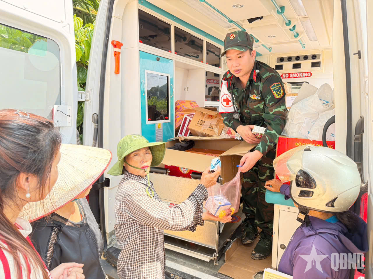 Dans l'après-midi du 10 octobre, le colonel Ha Duy Duong, directeur de l'hôpital militaire 354, a tenu une réunion d'urgence avec les organismes compétents et l'équipe de secours. Immédiatement après la réunion, les préparatifs ont été rapidement mis en œuvre. Le 11 octobre, à 9 heures, les forces de l'hôpital militaire 354 étaient sur place et se sont rendues à Thai Nguyen , une zone gravement touchée par les inondations.