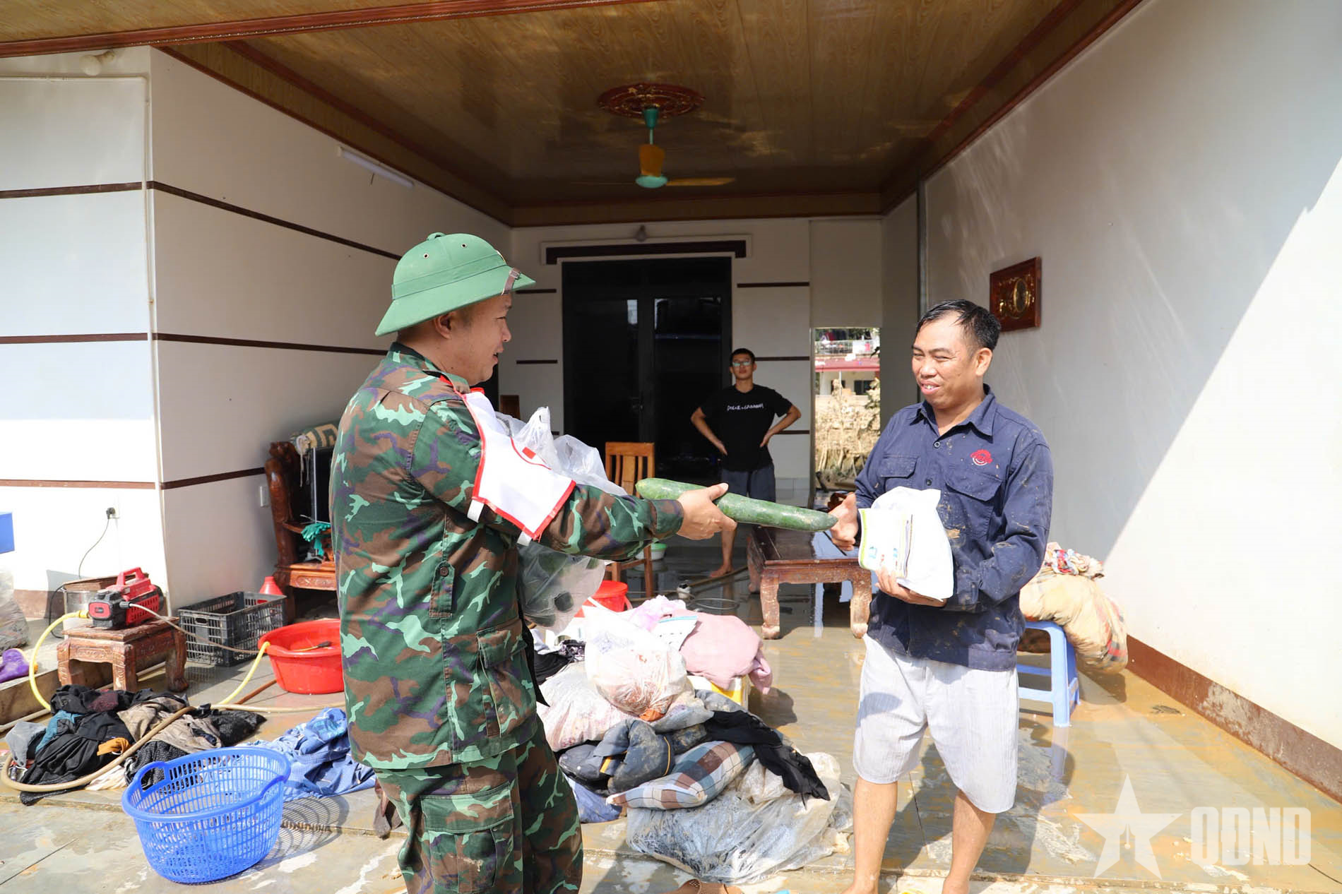 En mettant en œuvre les directives du chef du département général de la logistique et de l'ingénierie sur la garantie de la médecine militaire, la gestion de l'assainissement de l'environnement et la prévention et la lutte contre les épidémies pour aider les populations après les inondations causées par la circulation de la tempête n° 11 dans la province de Thai Nguyen, l'hôpital militaire 354 a déterminé qu'il s'agit d'une tâche particulièrement importante en temps de paix et l'hôpital est déterminé au plus haut niveau à aider rapidement les populations à surmonter les conséquences des tempêtes et des inondations, à stabiliser leur vie avec l'esprit de « Ne laisser personne de côté ».