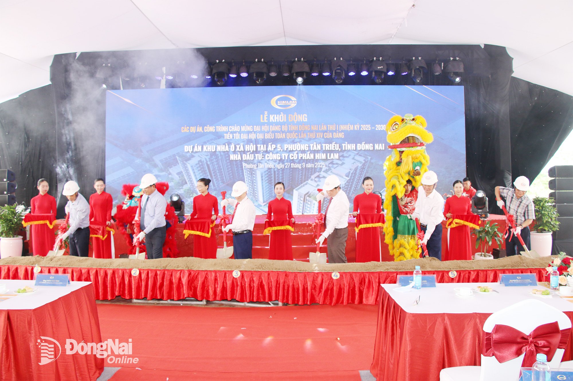 Les délégués ont procédé à la cérémonie de lancement du projet de logements sociaux dans le hameau 5, quartier de Tan Trieu, province de Dong Nai , le 27 septembre 2025. Photo : Hai Quan |