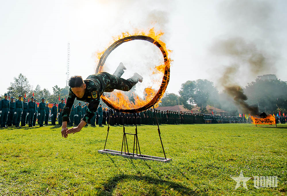 | Performance d'un parcours d'obstacles autour d'un cercle de feu. Photo : THANH CHUNG |