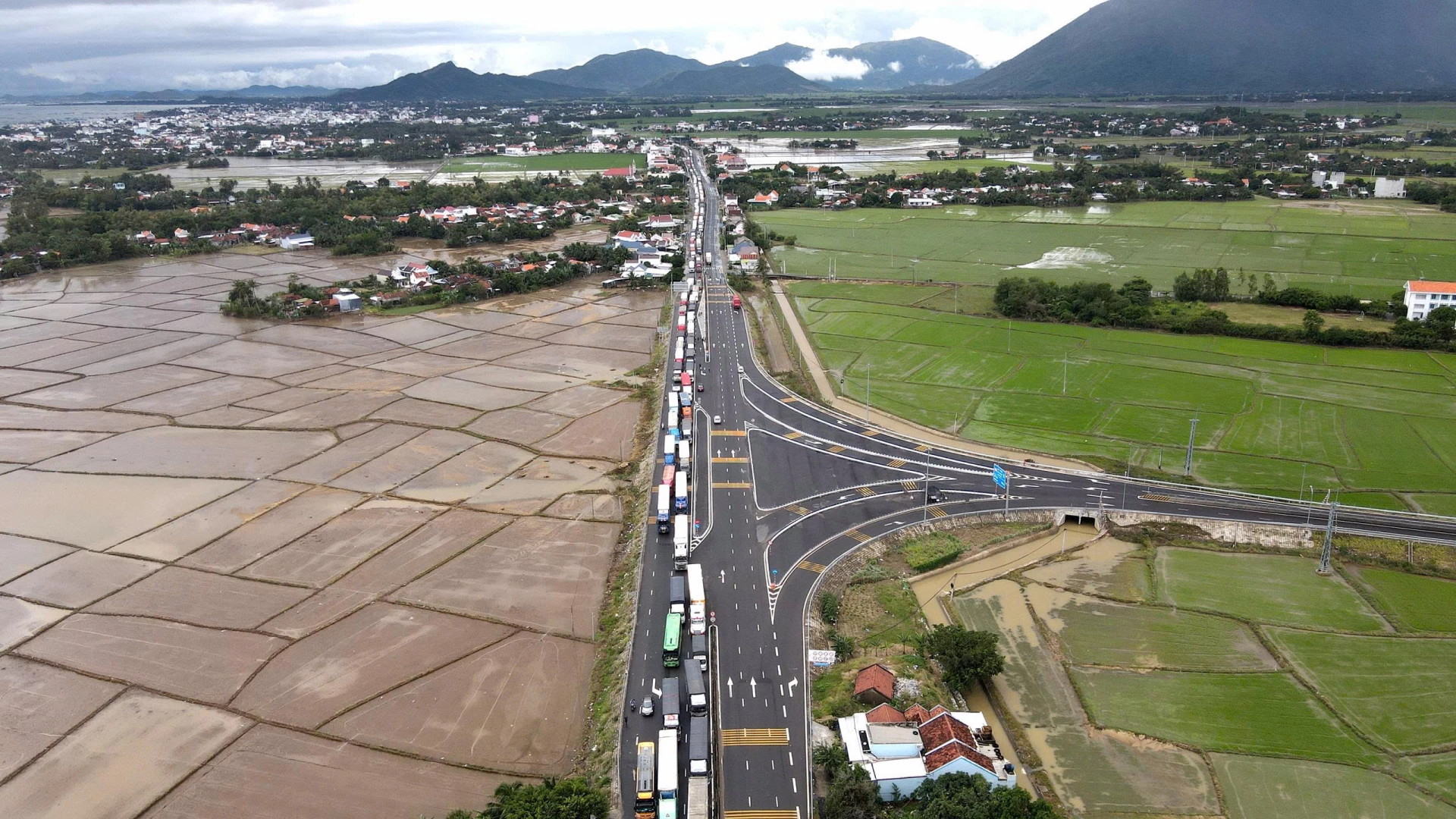 | Embouteillages au carrefour de Van Gia reliant l'autoroute Van Phong - Nha Trang à la route nationale 1. |
