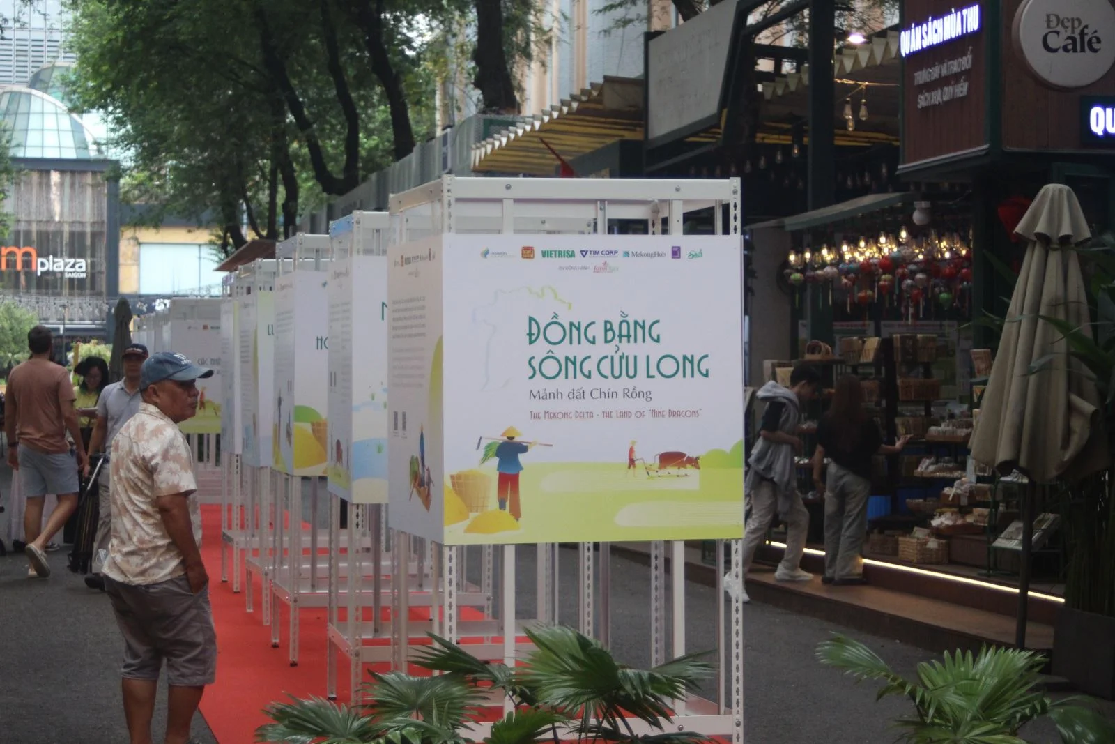 Parallèlement aux spectacles et aux expériences proposées, la série d'expositions bilingues en vietnamien et en anglais présente des aspects uniques du delta du Mékong, allant du potentiel et des défis liés au développement de nouvelles variétés de riz, aux modèles de bateaux traditionnels, aux outils agricoles traditionnels et modernes, en passant par des images d'oiseaux du sud dans les œuvres de l'artiste Dao Van Hoang.
