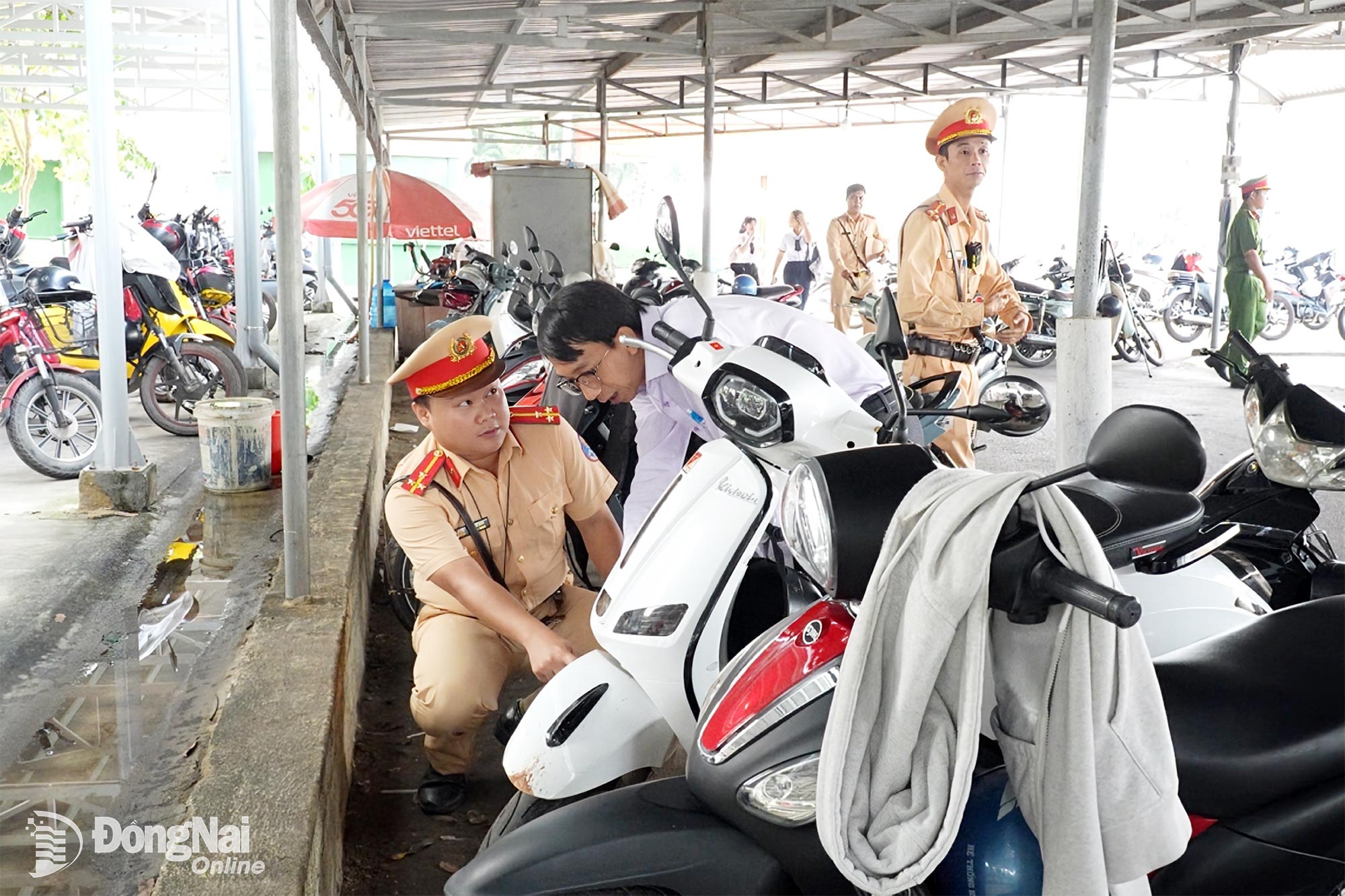 | Le service de police de la circulation de la province de Dong Nai , en collaboration avec la police de la commune de Trang Bom, a inspecté le parking du lycée Thong Nhat A (commune de Trang Bom). Photo : Dong Nai |
