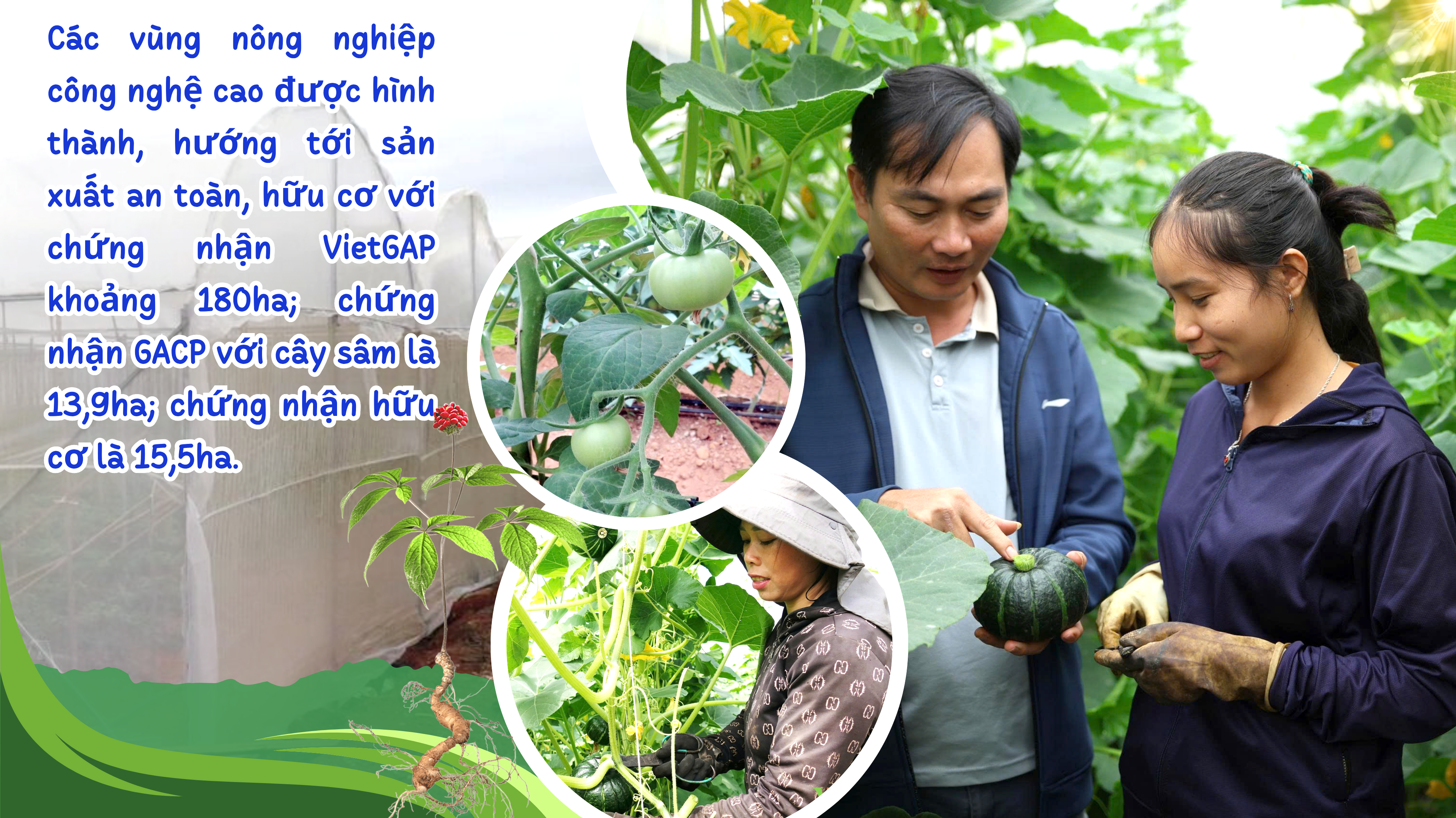 L'application des sciences et des technologies constitue une avancée majeure pour la transformation de l'agriculture traditionnelle en agriculture de pointe, améliorant ainsi la qualité et la compétitivité. Conscients de cette importance, de nombreuses entreprises, coopératives et agriculteurs ont modifié leur approche de la production, investi dans des serres et mécanisé leur production. Parallèlement, la province soutient l'application de technologies modernes telles que l'irrigation goutte-à-goutte, l'irrigation par aspersion, les serres filet et la production de nouvelles variétés d'arbres fruitiers. Des zones agricoles de pointe ont été créées, visant une production biologique sûre et conforme aux normes VietGAP. À ce jour, la province compte plus de 6 000 hectares de rizières sous techniques améliorées de riziculture (SRI), 200 hectares de légumes sous gestion intégrée des ravageurs (IPM), près de 57 hectares de serres filet ; 30 hectares d'irrigation économe en eau ; 209,4 hectares de cultures certifiées de toutes sortes, dont environ 180 hectares certifiés VietGAP ; 13,9 hectares certifiés GACP pour le ginseng ; et 15,5 hectares certifiés biologiques.