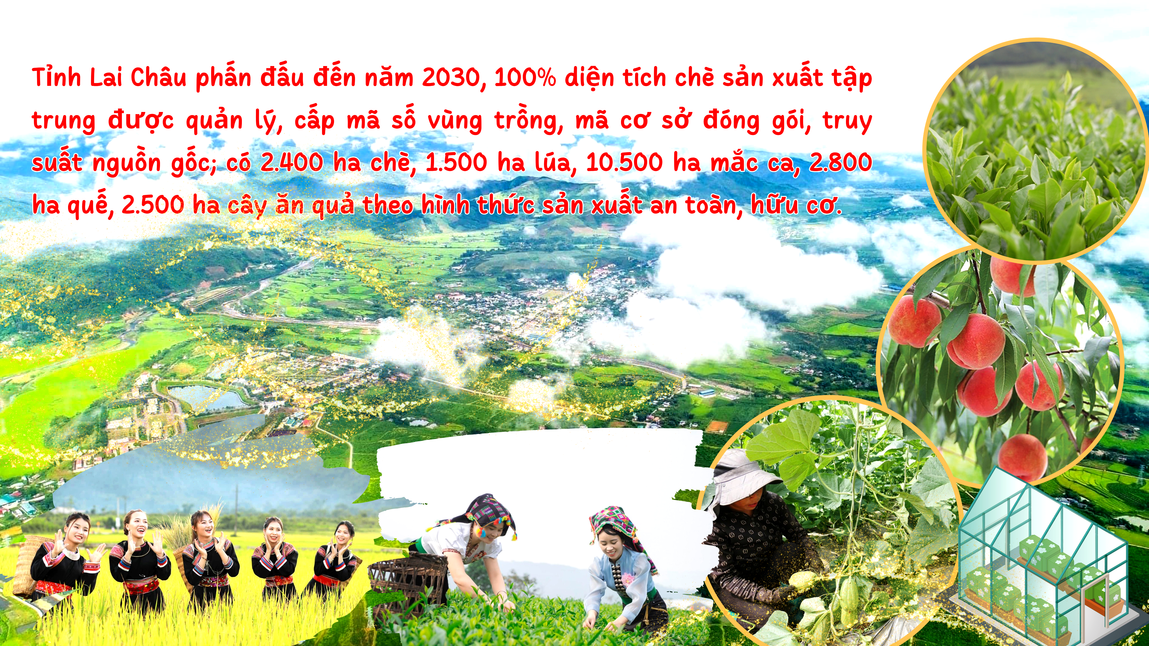 Lai Chau est une province montagneuse dotée d'un environnement et d'un climat diversifiés, propices à la culture de nombreuses cultures spécialisées telles que le thé, le riz et les arbres fruitiers tempérés. Cependant, la production agricole de la province est principalement constituée de matières premières ; les produits transformés sont encore rares et la marque n'est pas encore reconnue. La concentration des zones de production et la création de produits clés sont encore lentes. La production agricole de base ne s'est développée que dans les zones bénéficiant d'infrastructures et de conditions de transport favorables ; dans les communes reculées et frontalières de la province, le développement de l'agriculture de base reste limité.