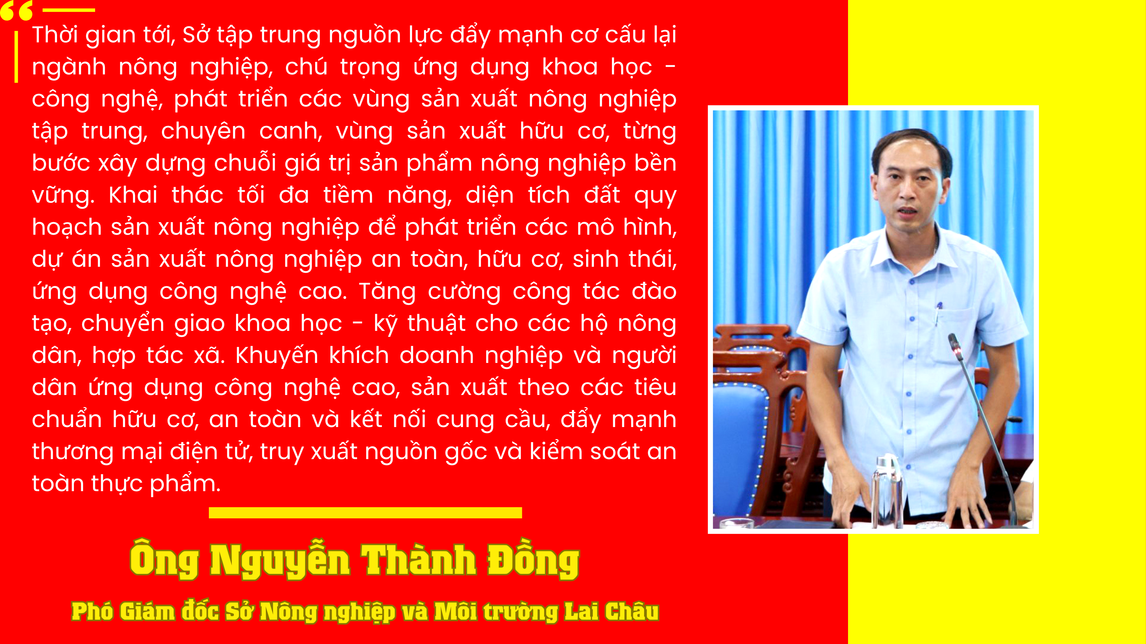 Français Entrant dans l'ère du développement national, face à l'exigence de renouveler le modèle de croissance agricole vers une direction verte, circulaire et durable, il est nécessaire de trouver des solutions révolutionnaires en matière de liens d'investissement, de développement des zones de production associées à la transformation et à la consommation pour surmonter les lacunes et les limitations actuelles, tout en créant des produits agricoles de haute qualité compétitifs sur les marchés nationaux et internationaux. Pour Lai Chau, la province continue de promouvoir la restructuration de la production agricole ; d'exploiter et de promouvoir le potentiel et les avantages de la localité. S'efforcer d'ici 2030, 100 % de la zone de production concentrée de thé sera gérée, dotée de codes de zone de culture, de codes d'installation de conditionnement et de traçabilité ; il y aura 2 400 hectares de thé, 1 500 hectares de riz, 10 500 hectares de macadamia, 2 800 hectares de cannelle, 2 500 hectares d'arbres fruitiers sous forme de production biologique sûre ; 70 % des exploitations agricoles et 50 % des coopératives de la province ont accès à des processus de gestion et de valorisation des déchets, à des technologies de recyclage et à la réutilisation des sous-produits agricoles. La quantité d'engrais organiques industriels et de pesticides biologiques utilisée représente au moins 30 % ; s'efforcer que plus de 50 % des rizières, théières, arbres fruitiers, légumes, etc. dans les zones de production concentrée appliquent pleinement la lutte intégrée contre les ravageurs.