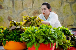 Mme Tuong Vy, propriétaire de la crêperie Huy Hoang, très populaire au sommet du mont Cam, explique que les crêpes sont servies avec une quarantaine de légumes sauvages différents. Même si les clients ne commandent qu'une seule portion, le personnel leur sert une grande assiette de légumes variés. Après leur repas, ils peuvent se rendre à table et choisir leurs légumes préférés pour en manger à nouveau, gratuitement.