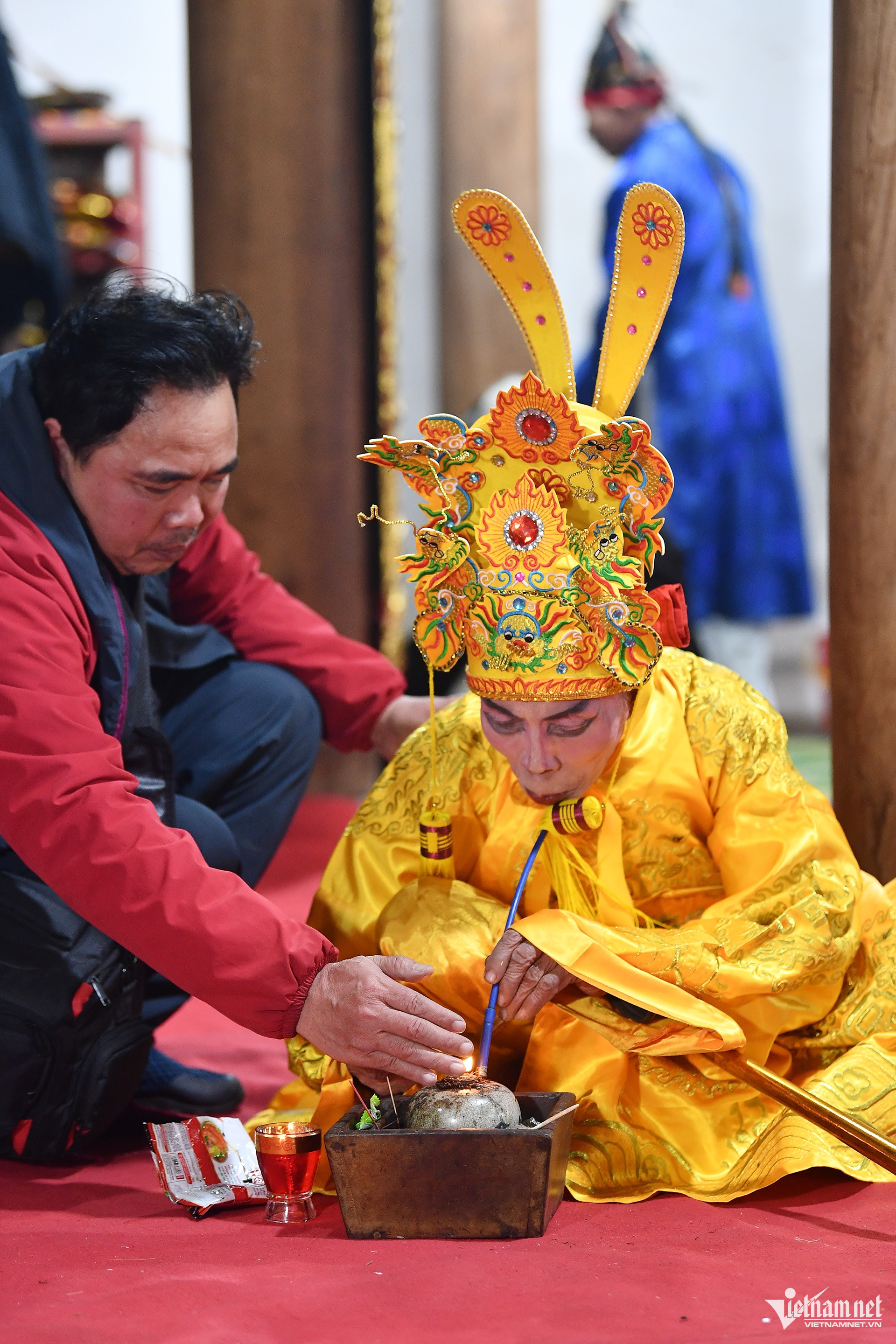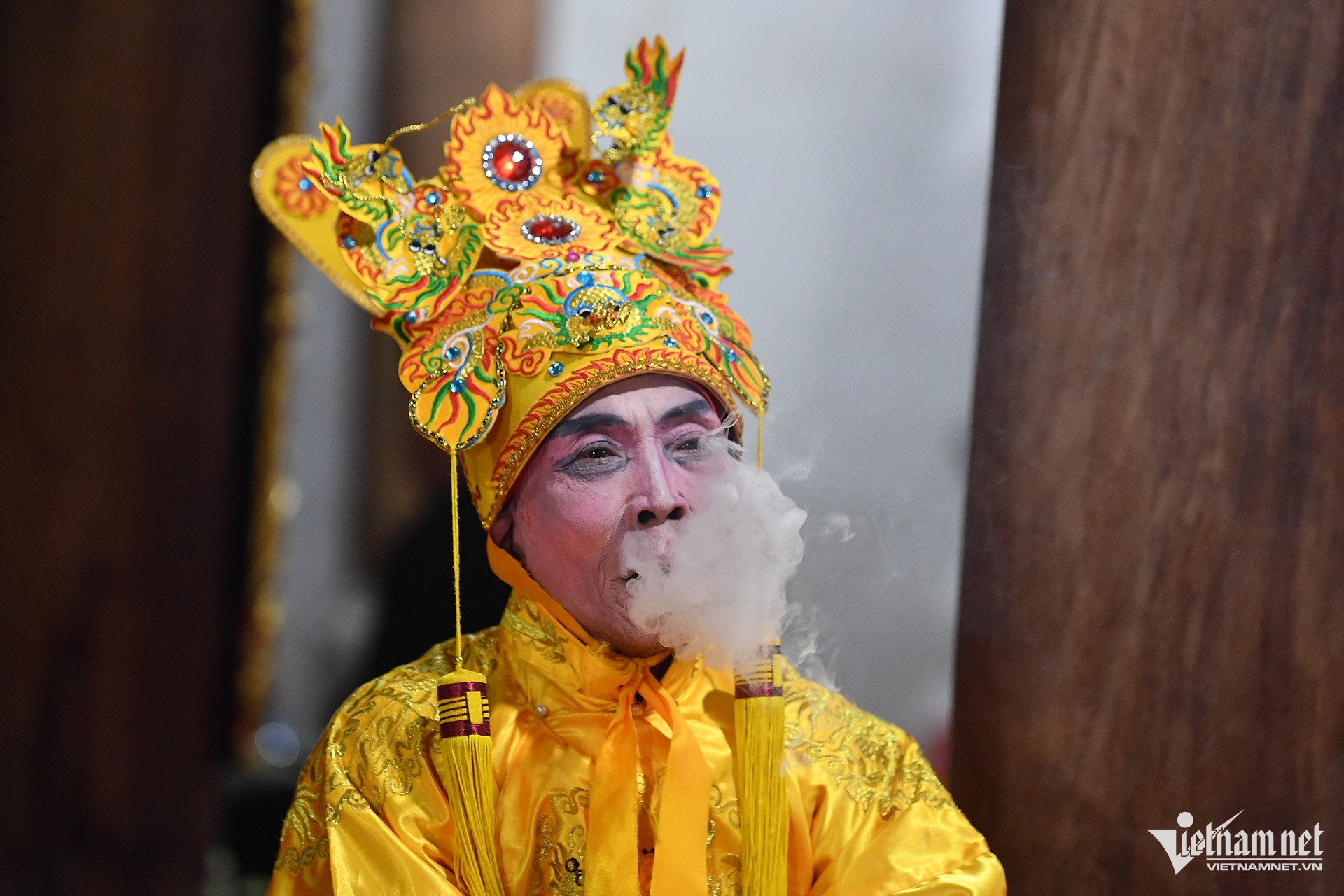 Cette année, M. Truong Dang Cuong (72 ans) a eu l'honneur de jouer le rôle de Seigneur (visage rouge). Selon le règlement du village, celui qui est choisi comme Seigneur doit avoir exercé le rôle de fonctionnaire il y a cinq ou six ans, jouir d'un certain prestige au sein du village, avoir une famille exemplaire, être cultivé et avoir des enfants heureux.