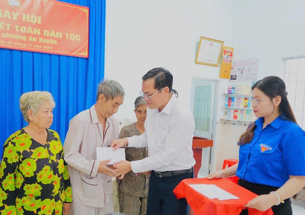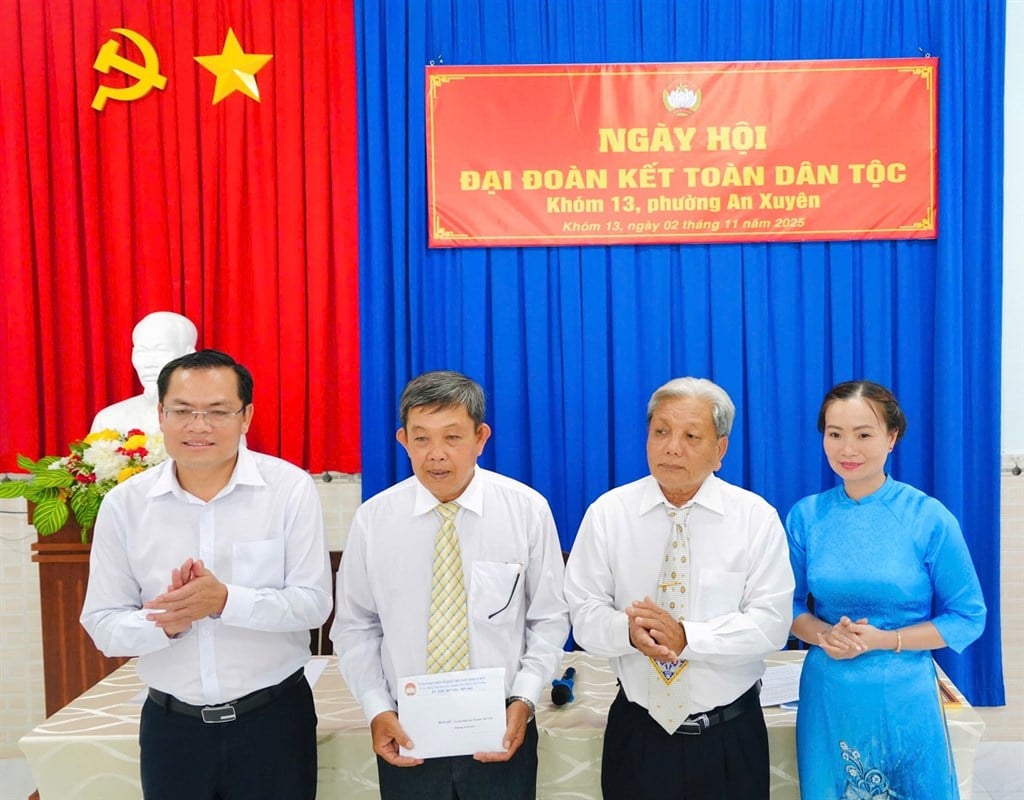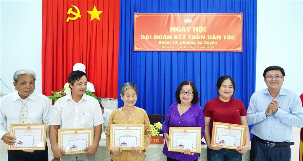 À cette occasion, le Comité du Front de la Patrie du Vietnam de la province de Ca Mau a remis un certificat de mérite au Comité de travail du Front du hameau 13 pour ses réalisations exceptionnelles dans l'organisation de la Journée nationale de la Grande Unité en 2025. Le Comité provincial du Parti - Conseil populaire - Comité populaire - Comité du Front de la Patrie du Vietnam de la province de Ca Mau a offert 5 cadeaux à des ménages pauvres, quasi-pauvres et en difficulté du quartier d'An Xuyen ; et 1 cadeau au Comité populaire du hameau 13.