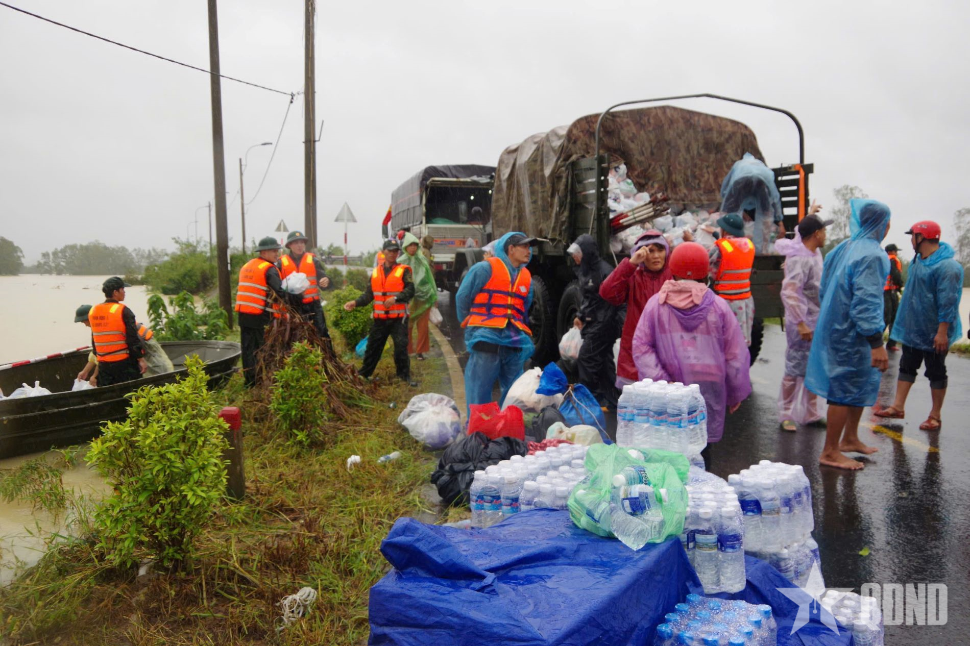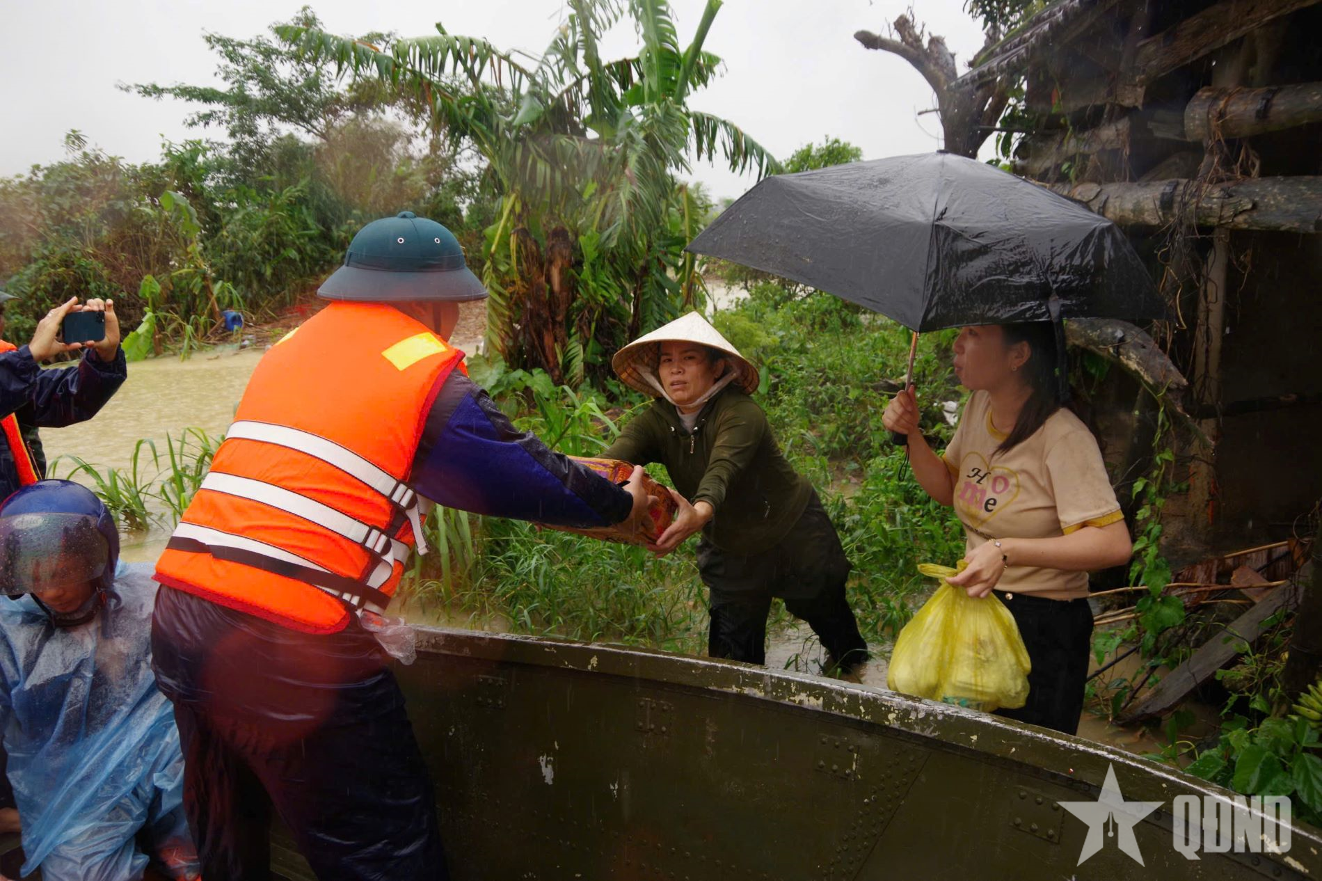 Dans les zones fortement inondées, malgré la disponibilité des dons des groupes de volontaires, leur acheminement jusqu'aux populations s'avérait complexe. Malgré les difficultés et les dangers, les officiers et soldats de la 2e division ont traversé les eaux en barques et en canoës pour livrer rapidement de la nourriture. Chaque boîte de nouilles instantanées, d'eau potable et de produits de première nécessité est parvenue à chaque foyer. Chaque don témoignait de la générosité, du dévouement et de l'humanité des officiers et soldats de la 2e division.