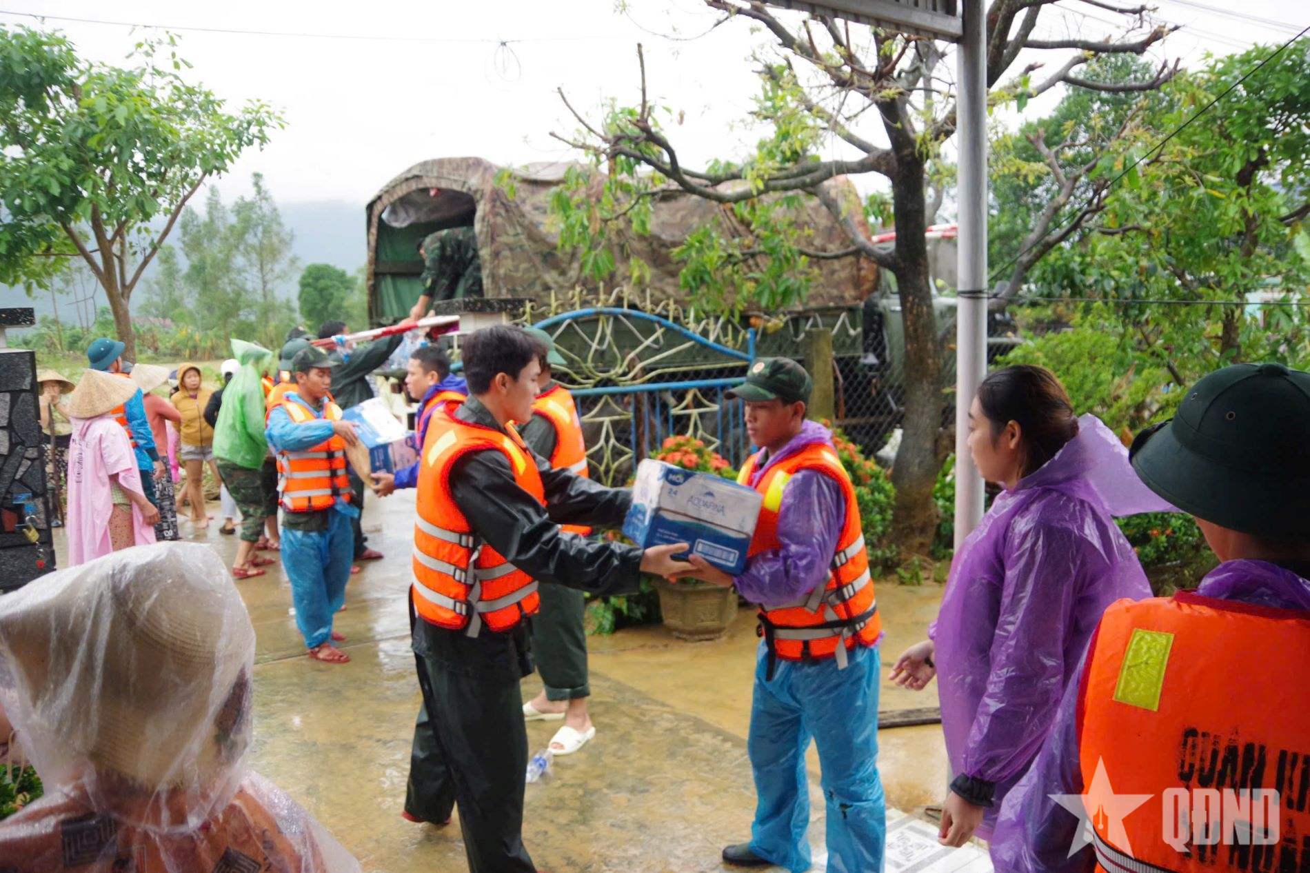Durant ces jours, les officiers et les soldats de la 2e division (5e région militaire) étaient toujours présents pour apporter leur soutien aux populations des provinces de Gia Lai et de Dak Lak. Outre leur aide directe à l'évacuation des personnes et au transport des biens de première nécessité, les soldats de la 2e division ont également joué un rôle essentiel de liaison entre les groupes de volontaires et les personnes sinistrées.