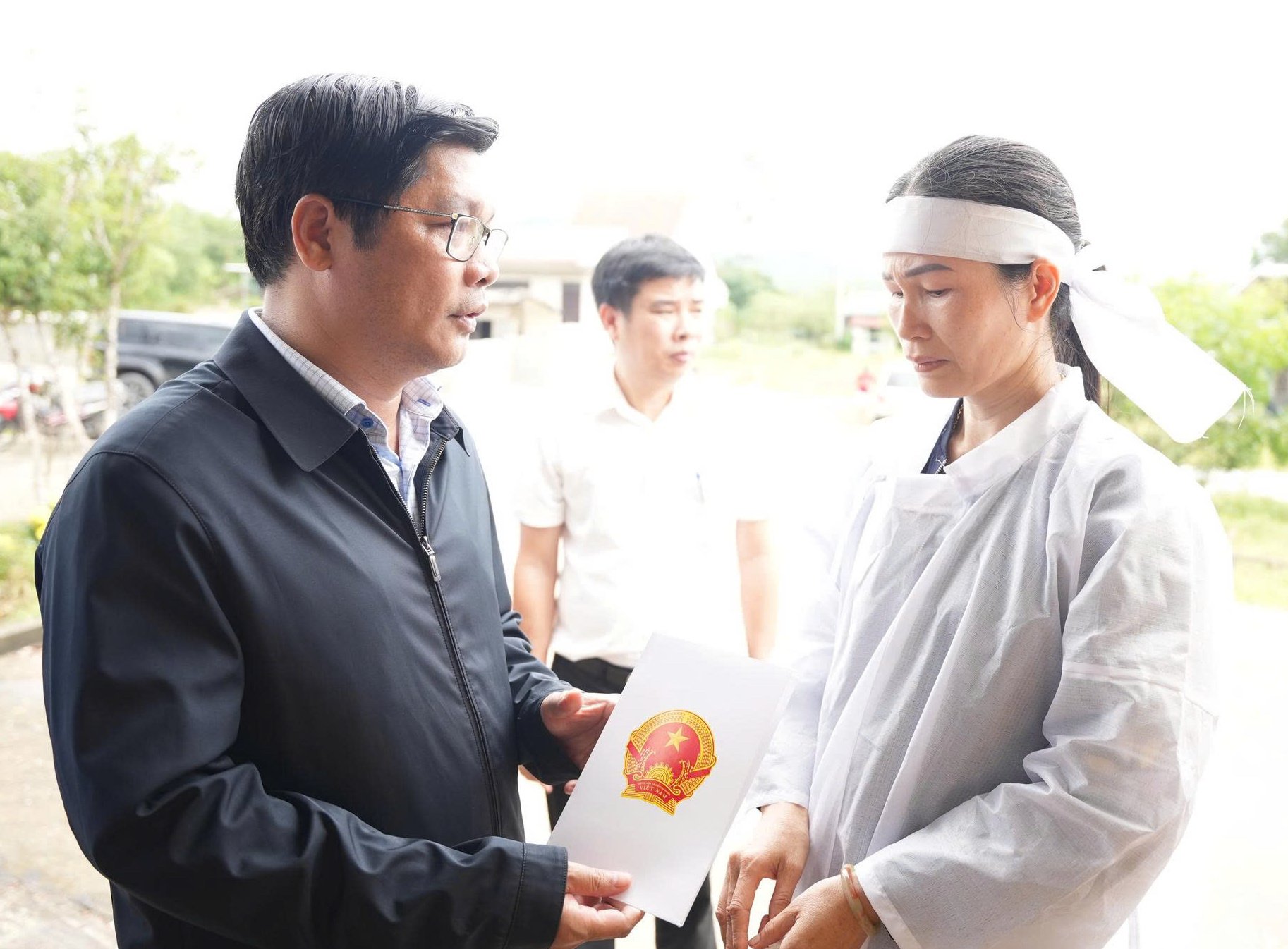 | Le secrétaire adjoint du Comité du Parti de la ville et vice-président du Comité populaire de la ville de Hué, Nguyen Chi Tai, a présenté ses condoléances à la famille de la victime à Thanh Thuy. Photo : Ngoc Hieu |