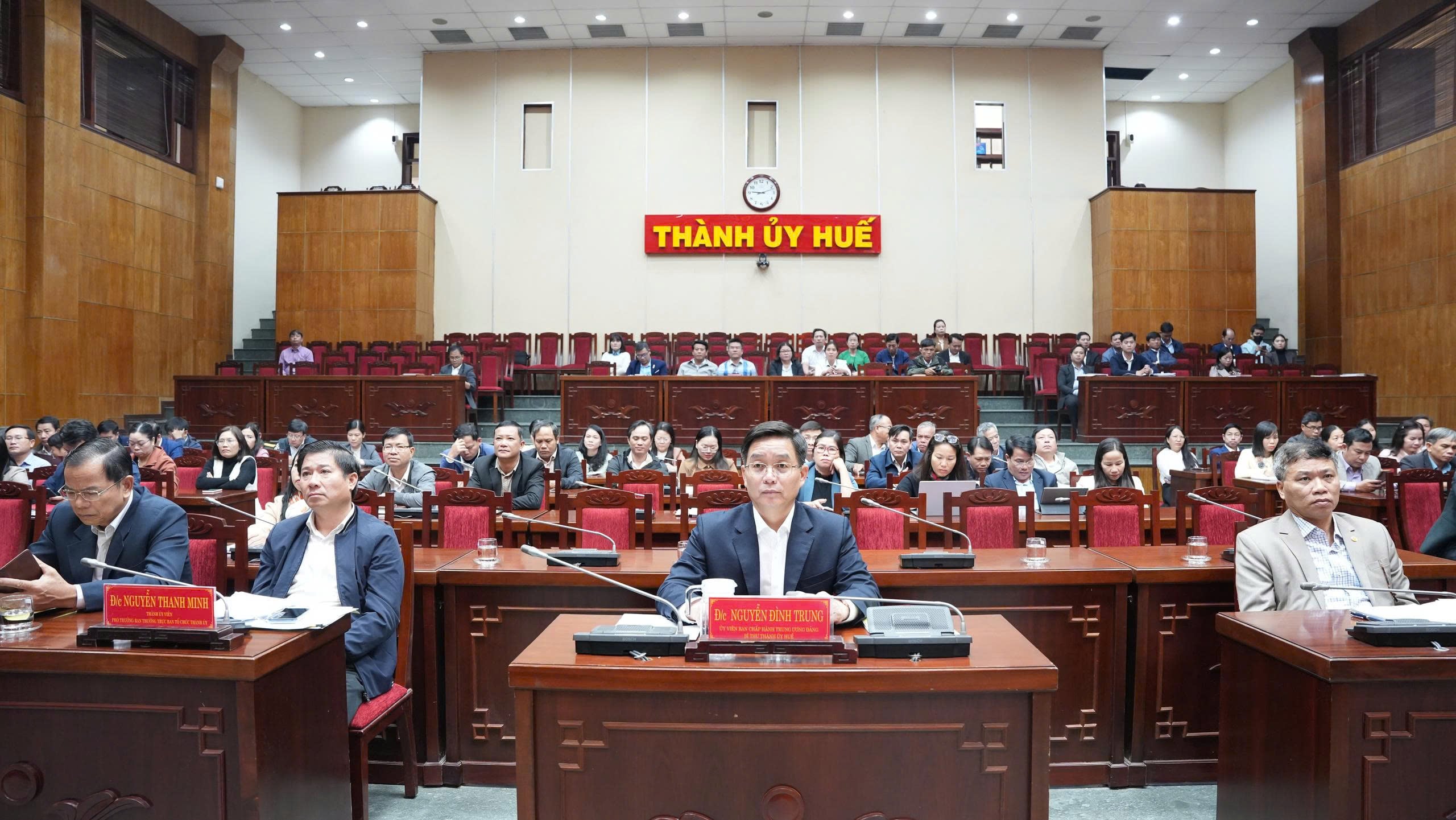 | Délégués présents au point de rencontre du Comité du Parti de la ville de Hué |