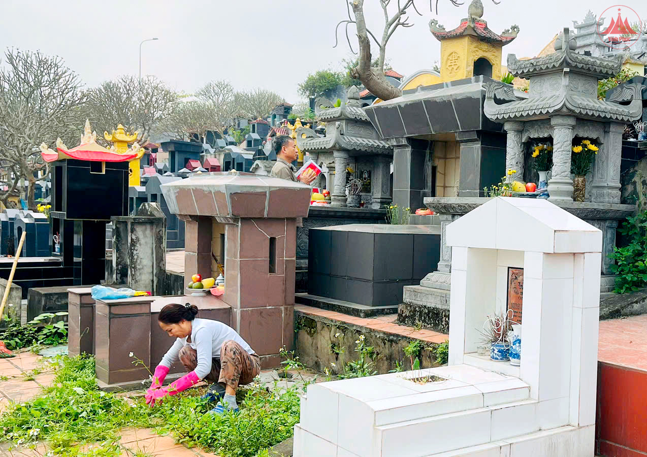 Bà Nguyễn Thị Loan cho biết: “Năm nào cũng vậy, vào dịp Tết Thanh minh, chồng con tôi đều về quê (Nam Định) từ sớm. Tại mộ phần của ông bà, tổ tiên, các anh chị em trong họ tập trung quét dọn, vệ sinh sạch sẽ, sau đó bày biện hoa quả, lễ ngọt, mặn để cúng. Sau khi tảo mộ, mọi người trở về nhà thờ họ nấu cơm cúng tổ tiên rồi cùng nhau ăn uống sum vầy rất vui vẻ, đầm ấm”.