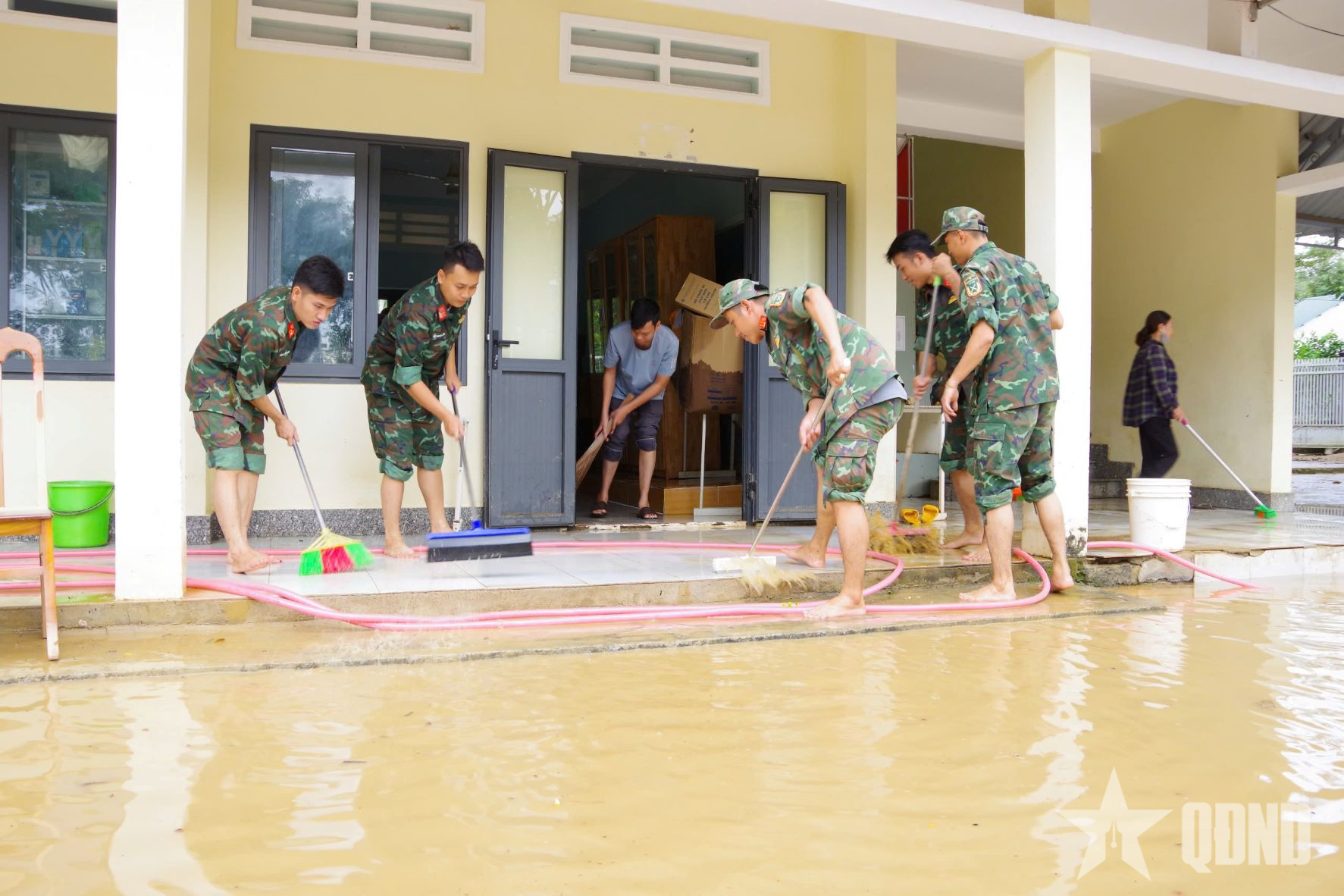 לא רק בתי ספר, אלא גם משפחות עם מדיניות מועדפת, הורים יחידניים או כאלה הנמצאים במצב קשה, חיילים נכחו מוקדם מאוד כדי לעזור לאנשים להתגבר על המצב. בביתו של מר נגוין סה הוי, חייל נכה בדרגה שנייה, בכפר 6, הבוץ היה בעובי של 10 ס"מ, וכיסה את החצר עד למטבח. גילו המבוגר ותופעות הלוואי של שבץ הקשו עליו מאוד לנוע. כשהוא חזר לראות את הבית המבולגן, עיניו היו אדומות, עצובות וחסרות אונים כאחד.