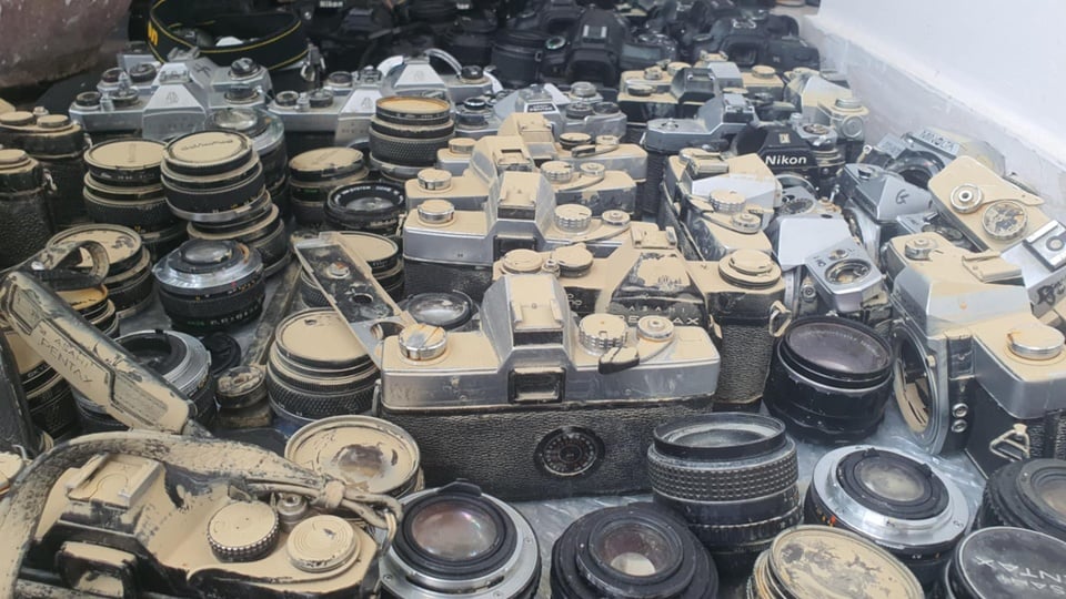 מאות מצלמות פילם ישנות לא ניתנות לשימוש לאחר השיטפון. צילום: NVCC. |