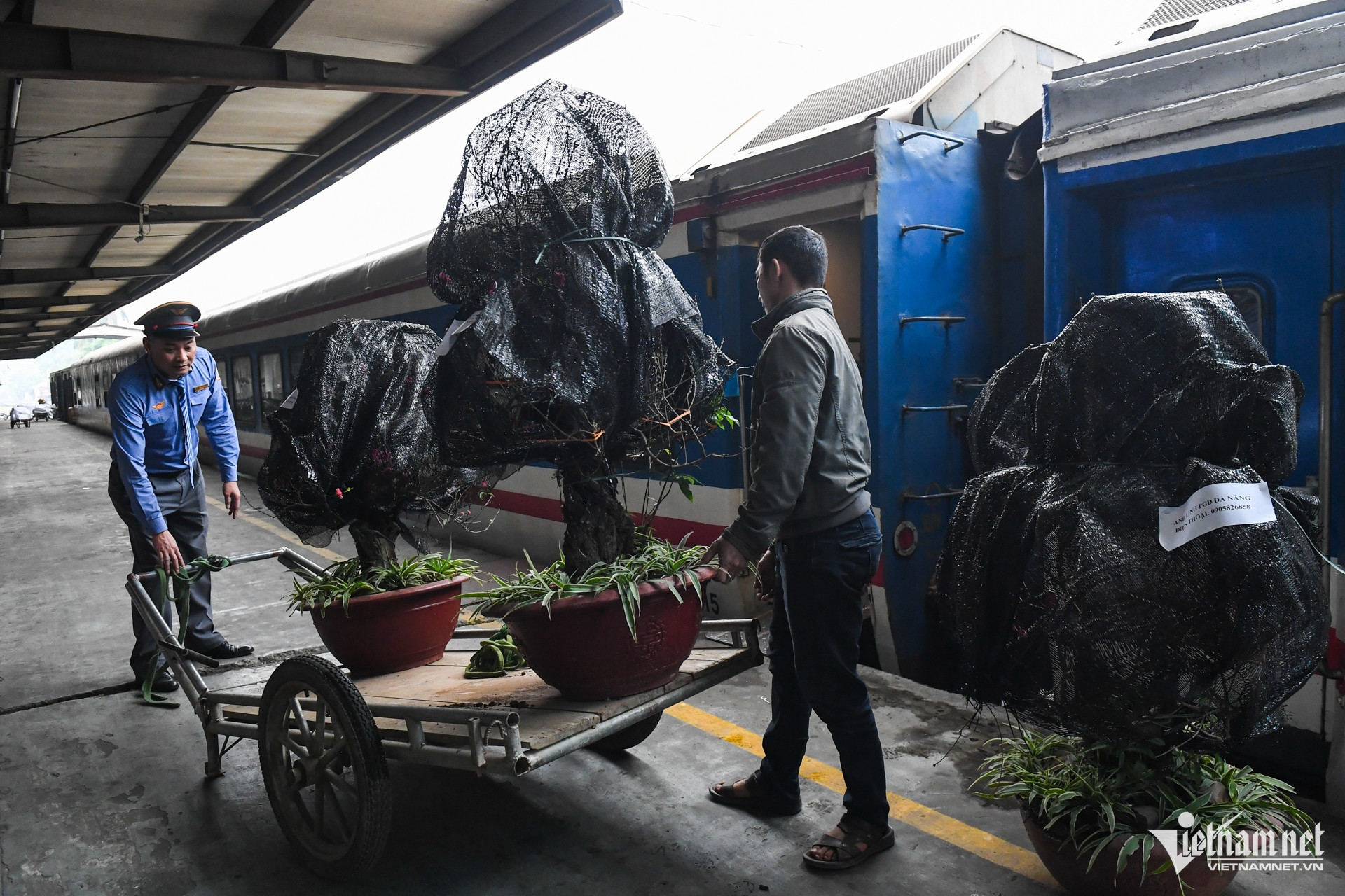 שלושה עצי אפרסק גדולים שנשלחו לדא נאנג ולהו צ'י מין סיטי הועלו גם הם ברכבת סוף השנה, נעטפו בקפידה על ידי צוות הרכבת והועברו לתא המטען.