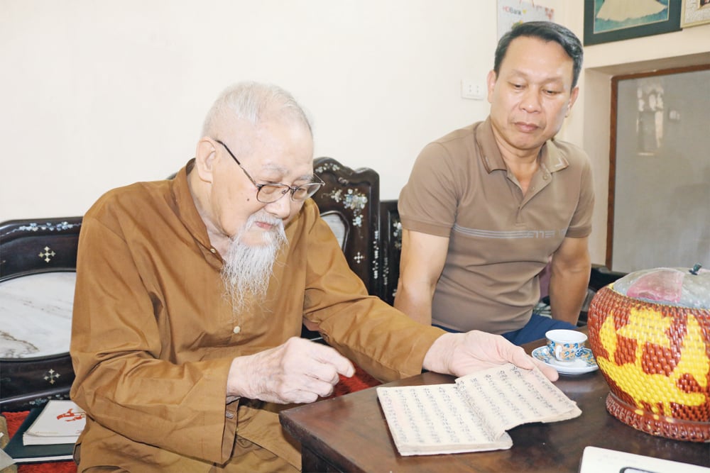 מר טראן ואן בוט, בן 97, מכפר קים ת'יו, ברובע פו קה, מציג את ספר הגנאלוגיה של משפחת טראן. |