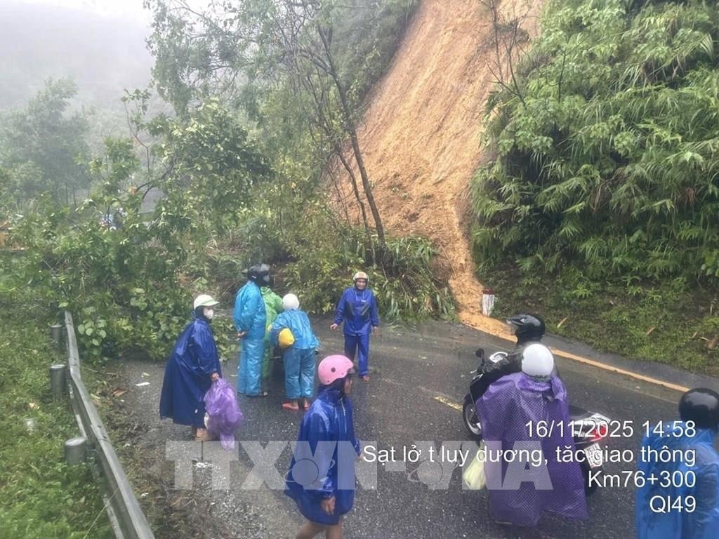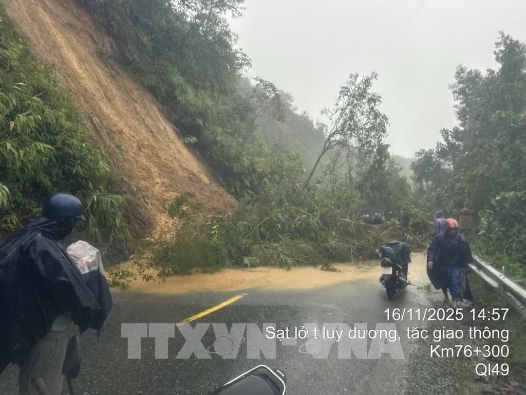אחר הצהריים של ה-16 בנובמבר, מידע מחברת ניהול ובנייה של כבישים ת'ואה ת'יאן הואה מסר כי כעת, בקומונות ההרריות של מחוז א-לואי הישן, יורד גשם כבד, הגורם למפולות במדרון כביש לאומי 49, בקילומטרים 76+300 (בקומונת א-לואי 3).