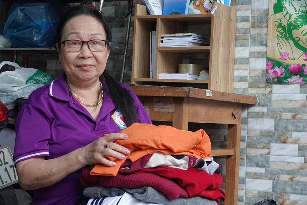 מר נגוין קווק נאם העביר בגדים ישנים כדי לתת לאנשים באזורים שנפגעו מהצפות.