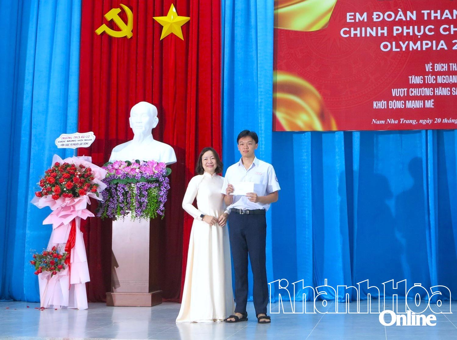 נציגי ההורים העניקו מתנות לעידוד המועמד דואן טאן טונג. |