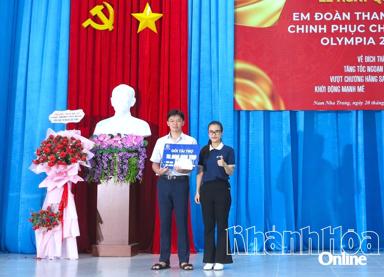נציג עסקי מעניק מתנה למתמודד דואן טאן טונג. |