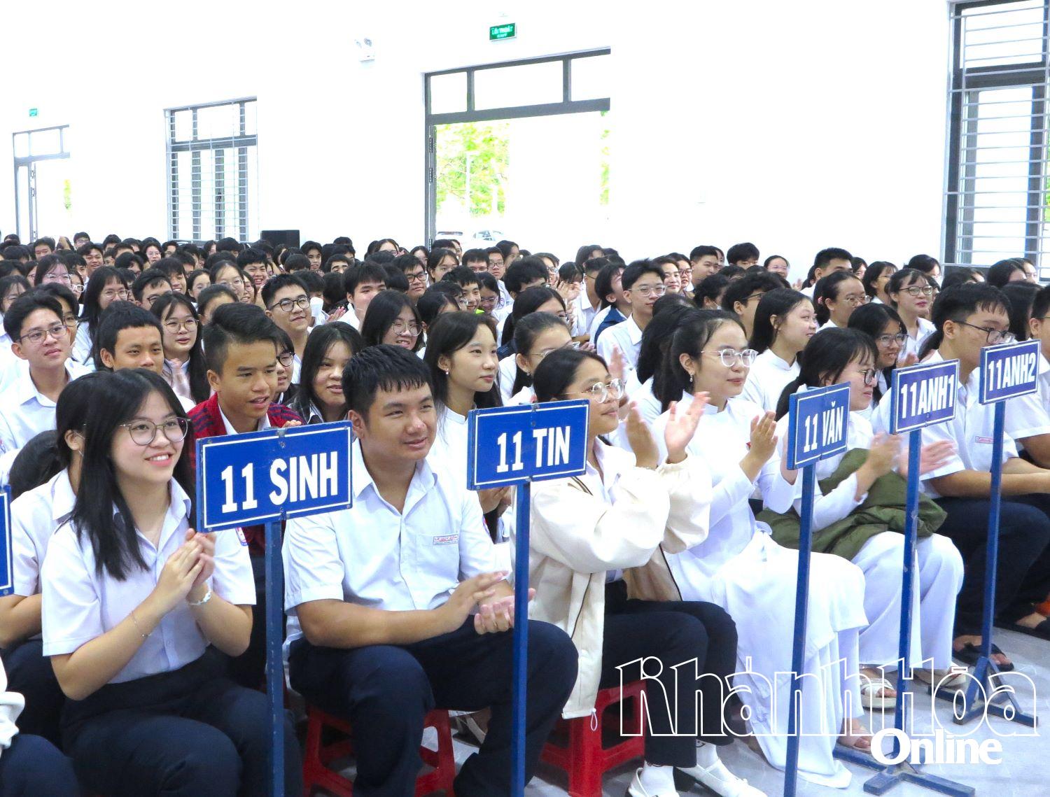 צוות, מורים ויותר מ-800 תלמידים מכל בית הספר עודדו את המתמודד דואן טאן טונג. |