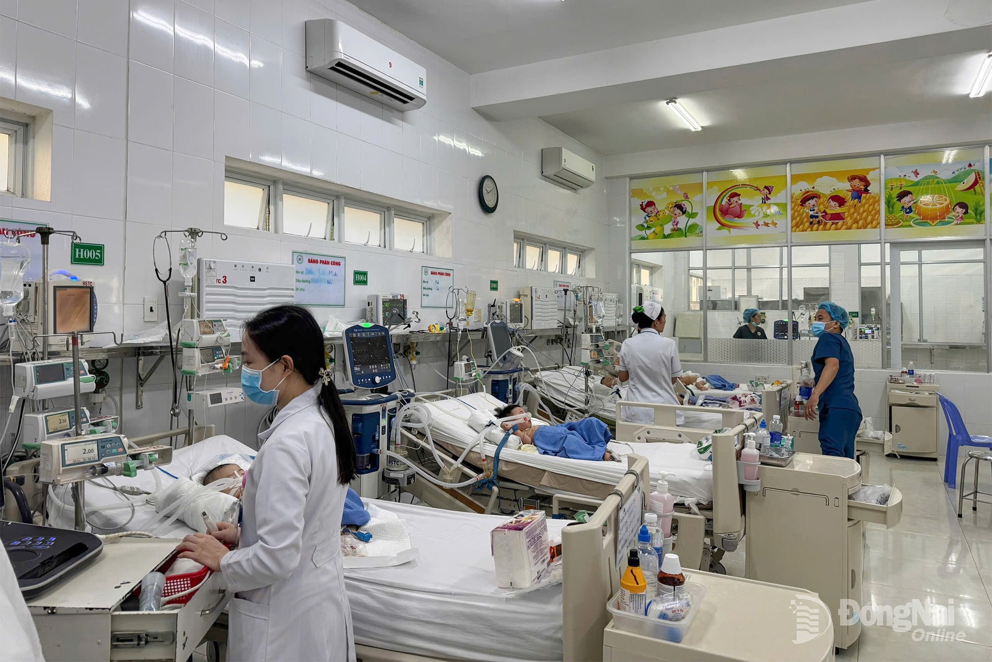 | डोंग नाई चिल्ड्रन हॉस्पिटल के गहन चिकित्सा एवं विष विज्ञान इकाई में लगभग 50% बिस्तर गंभीर हाथ, पैर और मुंह की बीमारी से पीड़ित बच्चों से भरे हुए हैं। फोटो: बिच न्हान |