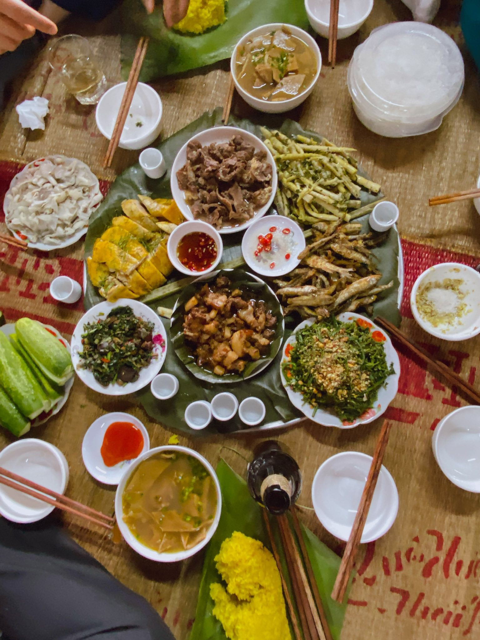 "हमारे गाँव के खाने में कई खास व्यंजन होते हैं। जैसे, जंगली सब्ज़ियाँ, जंगली बाँस के अंकुर, नदी में पाई जाने वाली मछलियाँ, ग्रिल्ड मीट, ग्रिल्ड चिकन, ग्रिल्ड फिश, बान चुंग, नेम थिन्ह, खट्टा मीट..."