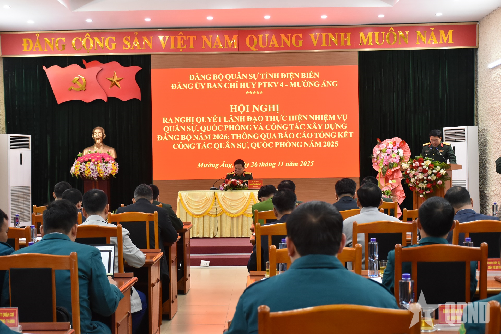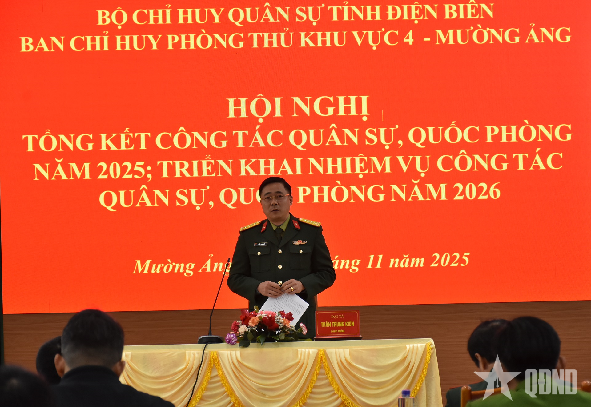 | पीटीकेवी 4 - मुओंग आंग कमांड के कमांडर कर्नल ट्रान ट्रुंग किएन ने 2025 में सैन्य और रक्षा कार्यों का सारांश प्रस्तुत करने के लिए सम्मेलन की अध्यक्षता की। |