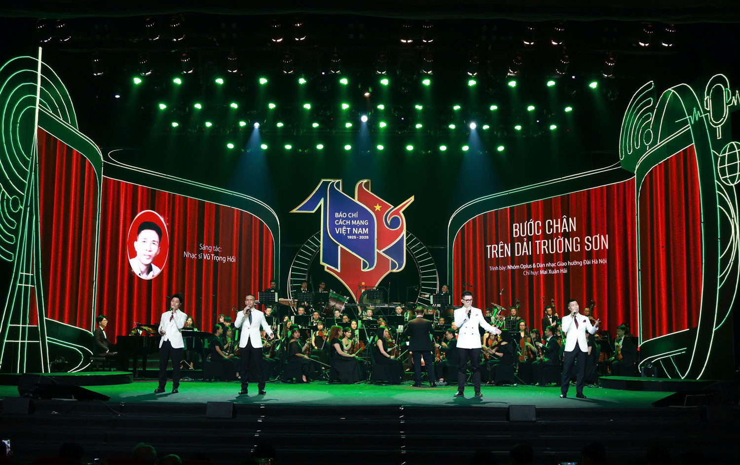 कार्यक्रम में कई प्रसिद्ध कलाकार एकत्रित हुए जैसे कि मेधावी कलाकार डांग डुओंग, डुक तुआन, वो हा ट्राम, डोंग हंग, हुओंग ट्राम, ओप्लस ग्रुप, हनोई रेडियो सिम्फनी ऑर्केस्ट्रा... कलाकारों ने देश और पत्रकारिता के महत्वपूर्ण ऐतिहासिक क्षणों से जुड़े गीतों की एक श्रृंखला प्रस्तुत की जैसे कि लेन डांग, तिएन क्वान का, डु किच सोंग थाओ, ताम सु न्गुओई लाम बाओ, हैलो वियतनाम, मोट वोंग वियतनाम...