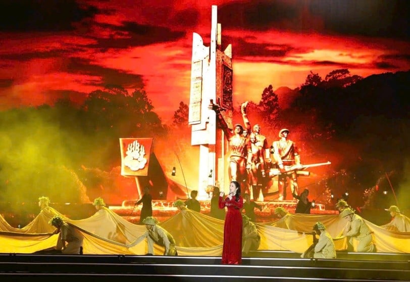 "लो रिवर एपिक" - प्रतिभाशाली कलाकार फुओंग नगा द्वारा गाया गया प्रतिरोध संगीत और आधुनिक वियतनामी संगीत का एक उत्कृष्ट नमूना। चित्र: निन्ह बिन्ह समाचार पत्र और पीटीटीएच