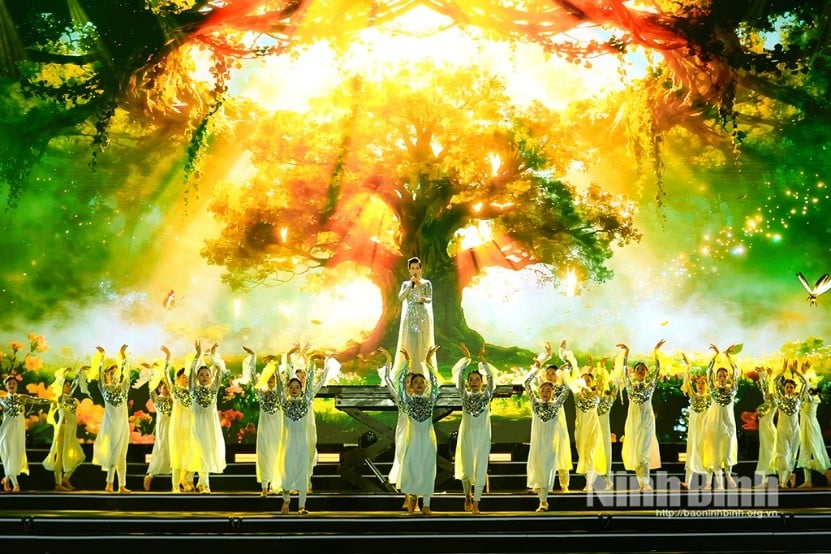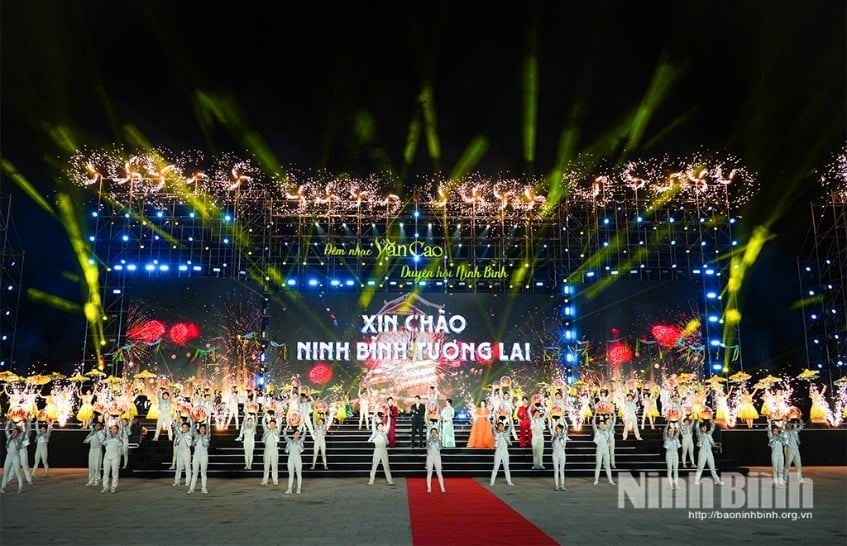 "हेलो निन्ह बिन्ह फ्यूचर - प्राउड ऑफ निन्ह बिन्ह होमलैंड" गीत के मिश्रण ने एक भावुक संगीत संध्या का समापन किया। फोटो: निन्ह बिन्ह समाचार पत्र और पीटीटीएच