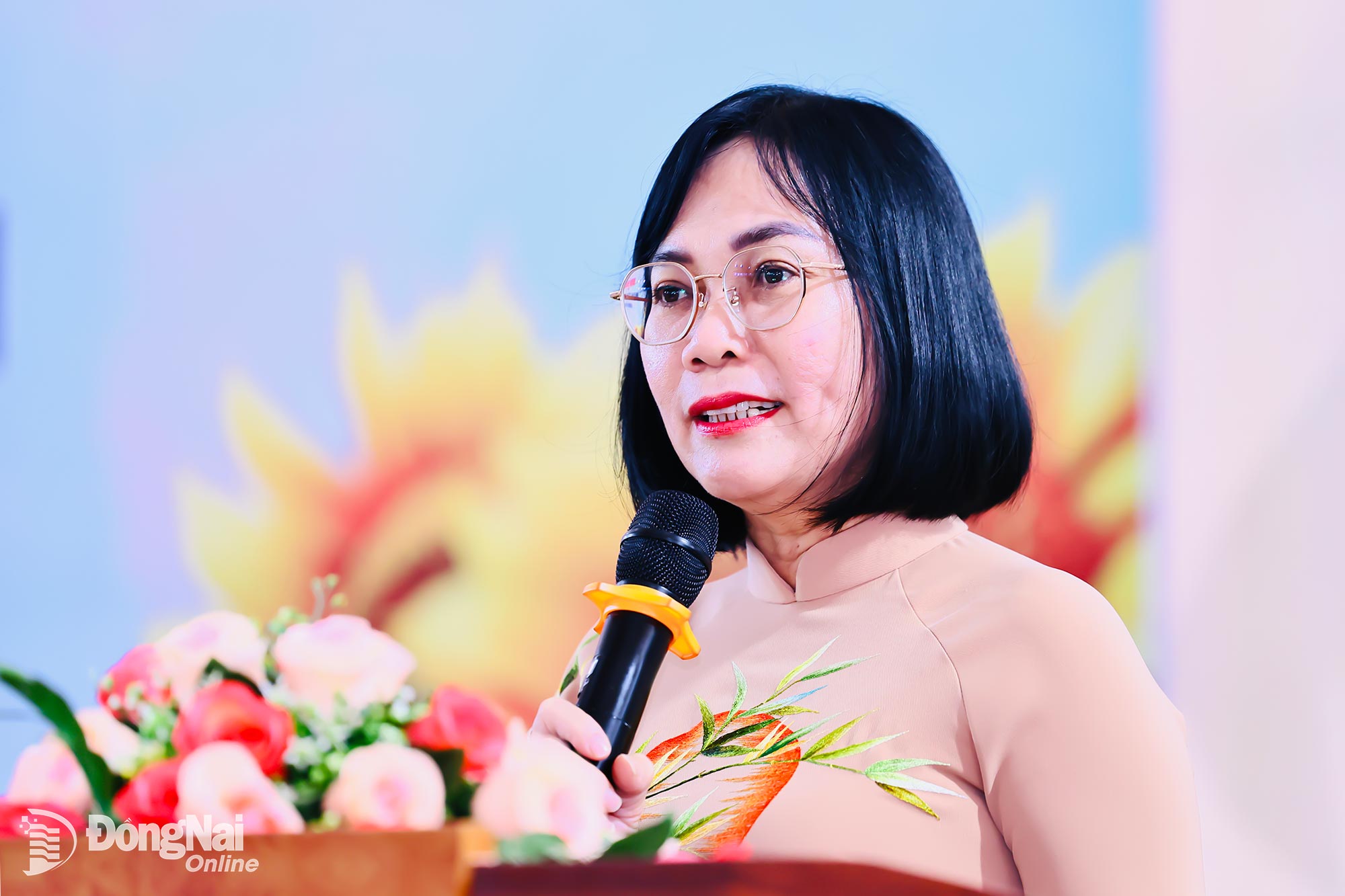 | प्रांतीय पार्टी समिति की सदस्य और डोंग नाई प्रांतीय जन समिति की उपाध्यक्ष गुयेन थी होआंग ने 20 नवंबर को वियतनामी शिक्षक दिवस पर लुओंग द विन्ह हाई स्कूल फॉर द गिफ्टेड में बधाई भाषण दिया। फोटो: कांग न्घिया |