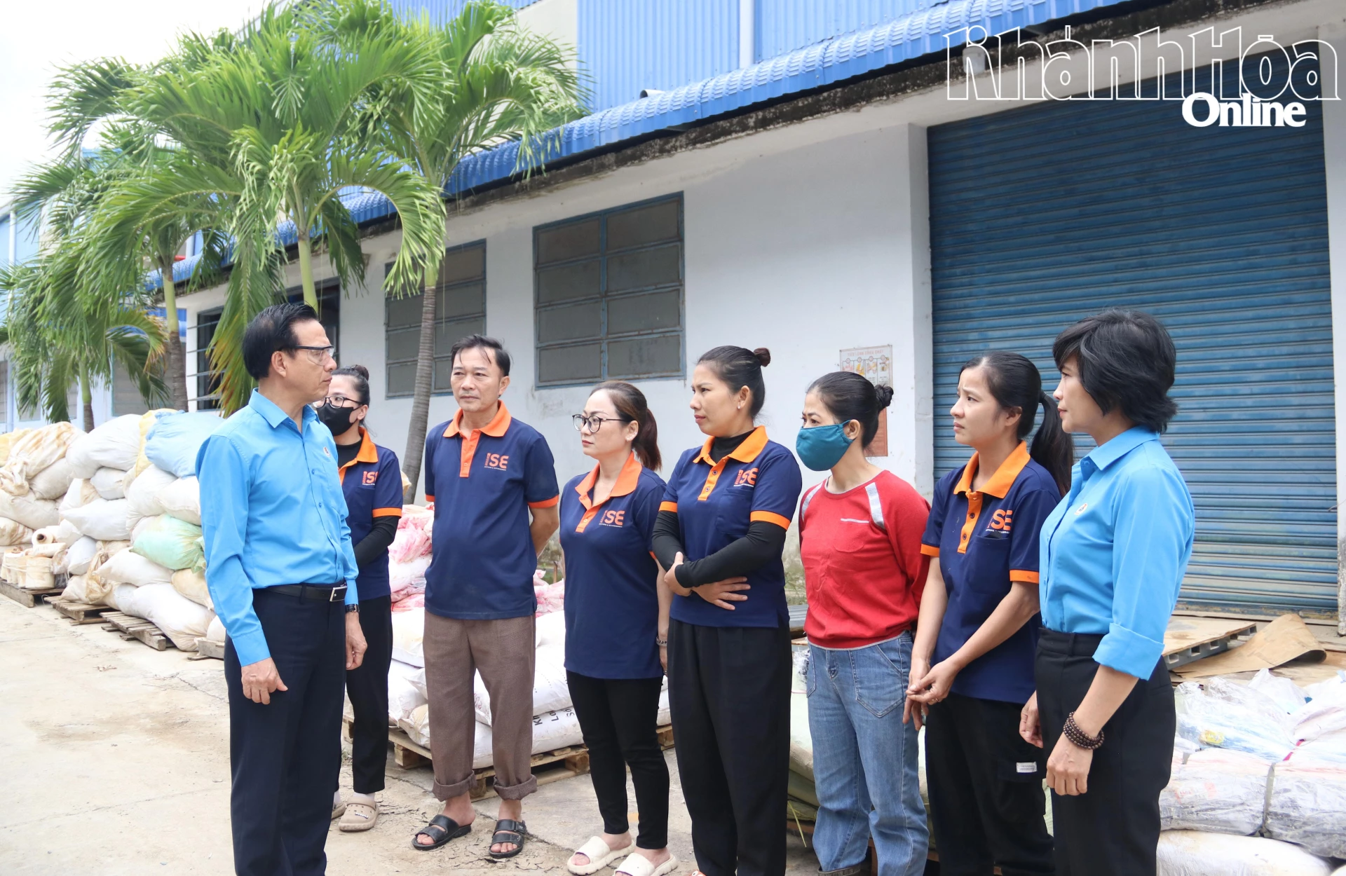| प्रांतीय श्रमिक संघ के नेताओं ने खान होआ वानिकी और जलीय उत्पाद प्रसंस्करण संयुक्त स्टॉक कंपनी के श्रमिकों को समर्थन दिया। |