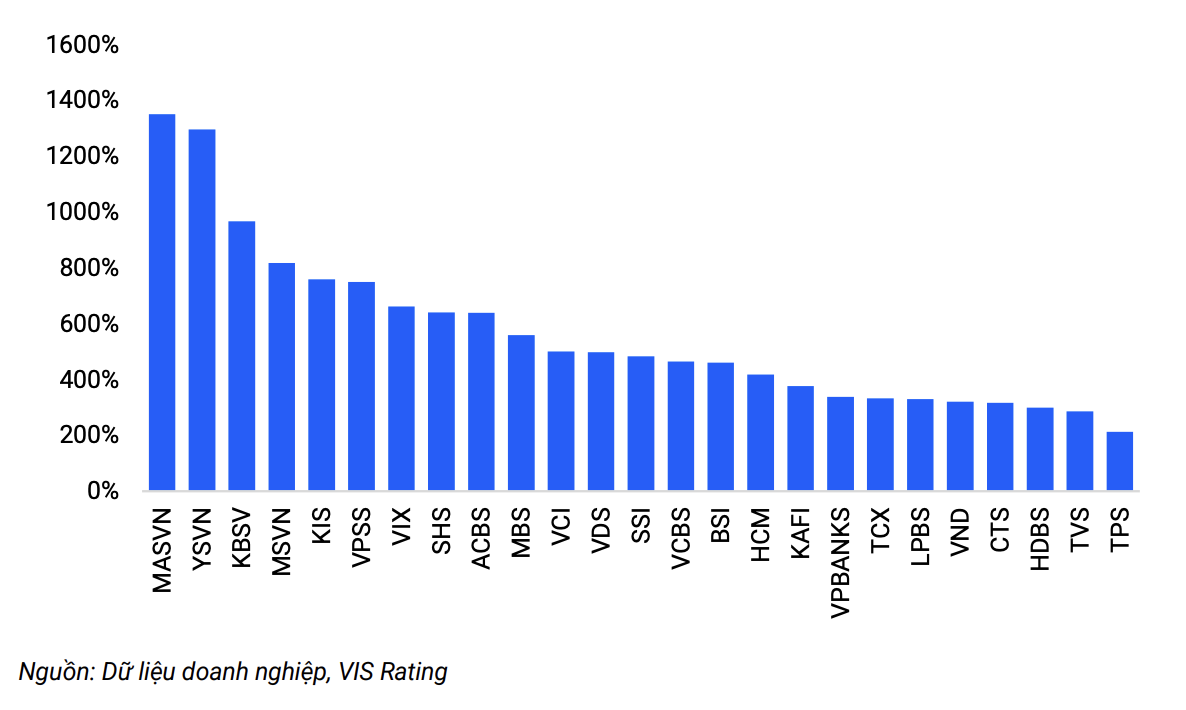 मार्जिन ऋण (जैसे एमबीएस) और एसएचएस जैसे अत्यधिक तरल स्टॉक ट्रेडिंग पर ध्यान केंद्रित करने वाली कंपनियां अभी भी अच्छी स्थिति में हैं, जिनकी वित्तीय सुरक्षा अनुपात 6एम 2025 में 550% से 650% तक है। इस बीच, वीएनडायरेक्ट और टीपीएस जैसी बहुत सारी कॉर्पोरेट बॉन्ड रखने वाली कंपनियां घाटे को अवशोषित करने और विकास की गति का समर्थन करने की अपनी क्षमता में सुधार करने के लिए सक्रिय रूप से पूंजी जुटा रही हैं।