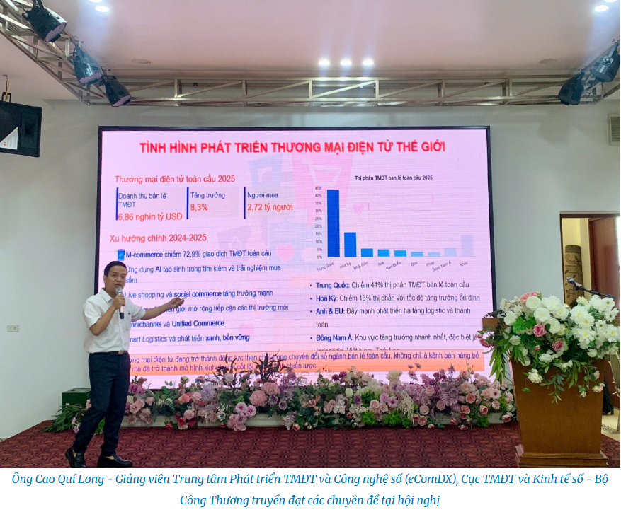 सम्मेलन में, ई-कॉमर्स और डिजिटल अर्थव्यवस्था विभाग के प्रतिनिधियों ने निम्नलिखित विषयों पर प्रस्तुति दी: ई-कॉमर्स और वियतनाम के ई-कॉमर्स कानून का अवलोकन, वेबसाइट अधिसूचना प्रक्रियाओं पर निर्देश, ई-कॉमर्स बिक्री अनुप्रयोग, और वर्तमान नियमों के अनुसार ई-कॉमर्स में प्रशासनिक उल्लंघनों से निपटना।