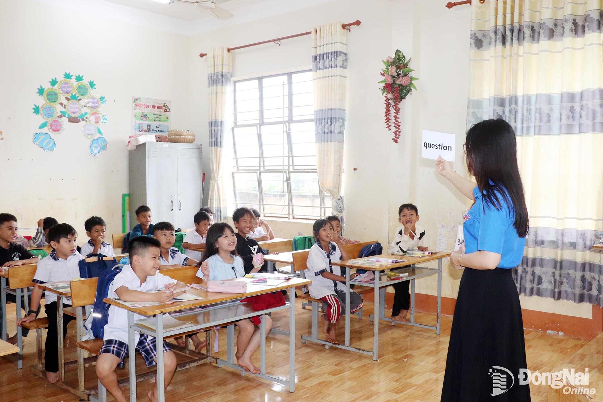 | डोंग नाई प्रांत के बु गिया मैप कम्यून स्थित डाक ए प्राइमरी स्कूल के छात्रों के लिए अंग्रेज़ी का एक पाठ। चित्र: हाई येन |