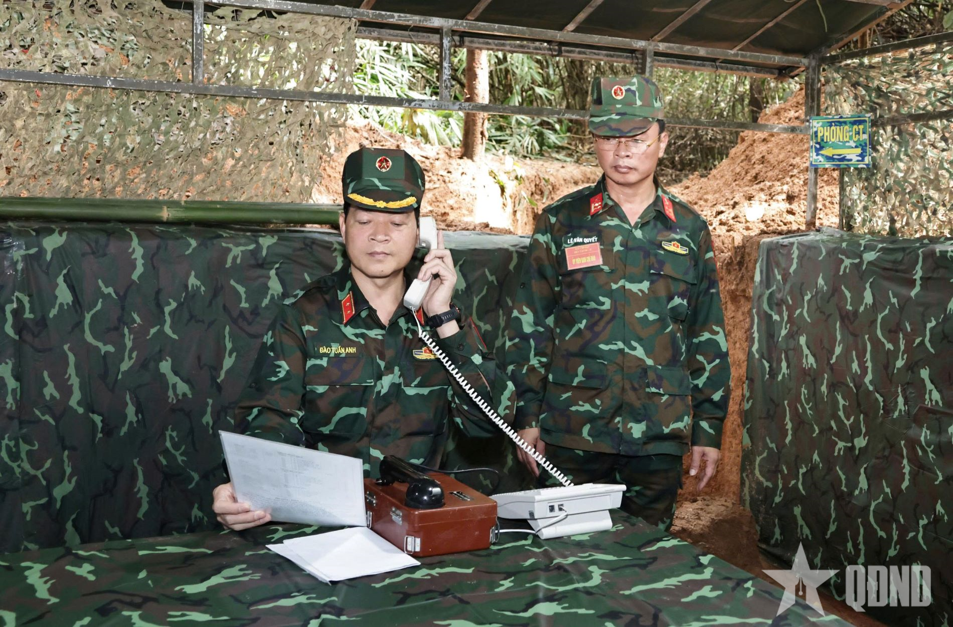 | 34वीं कोर के कमांडर लेफ्टिनेंट जनरल दाओ तुआन आन्ह अभ्यास के दौरान संचार प्रणाली की जांच करते हुए। |