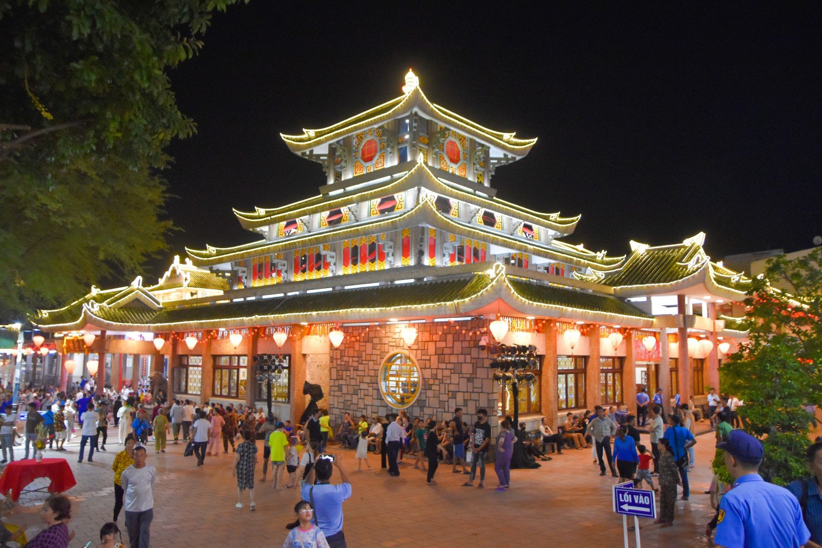 रात में कई पर्यटक पवित्र माता मंदिर देखने आते हैं। चित्र: थान तिएन