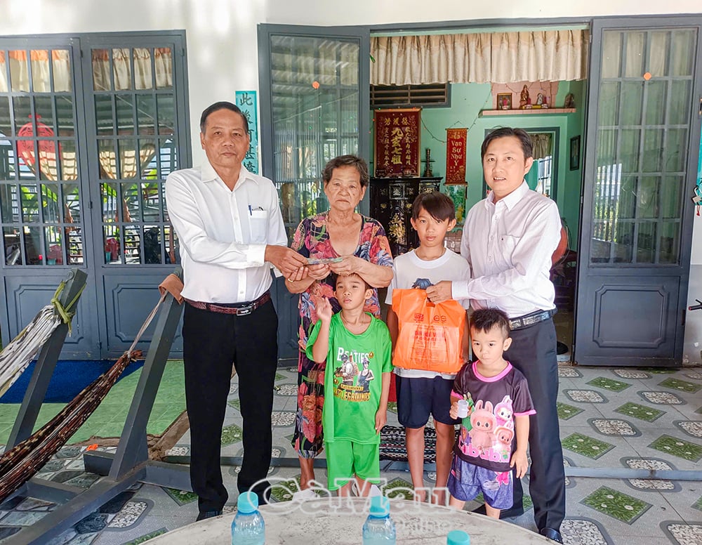Tận tay trao số tiền hỗ trợ, ông Lê Quốc Văn, Chủ tịch Hội Chữ thập đỏ tỉnh, ân cần hỏi thăm đời sống, động viên gia đình em Trần Gia Lợi sớm vượt qua khó khăn, mong rằng với số tiền hỗ trợ giúp em phần nào trang trải cuộc sống.