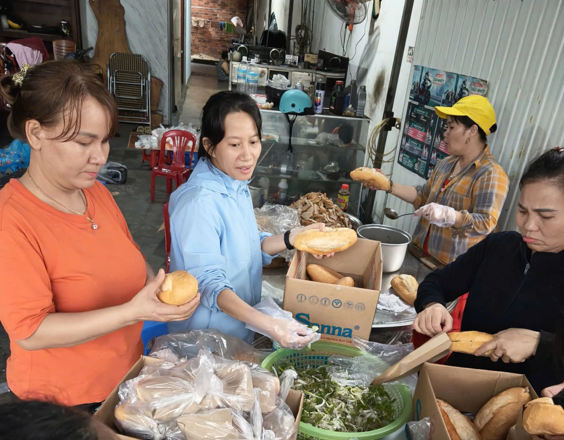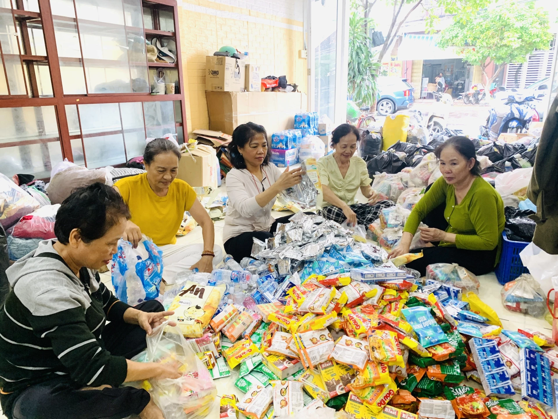 | Phụ nữ phường Nam Nha Trang chuẩn bị, đóng gói hàng hóa hỗ trợ người dân. |