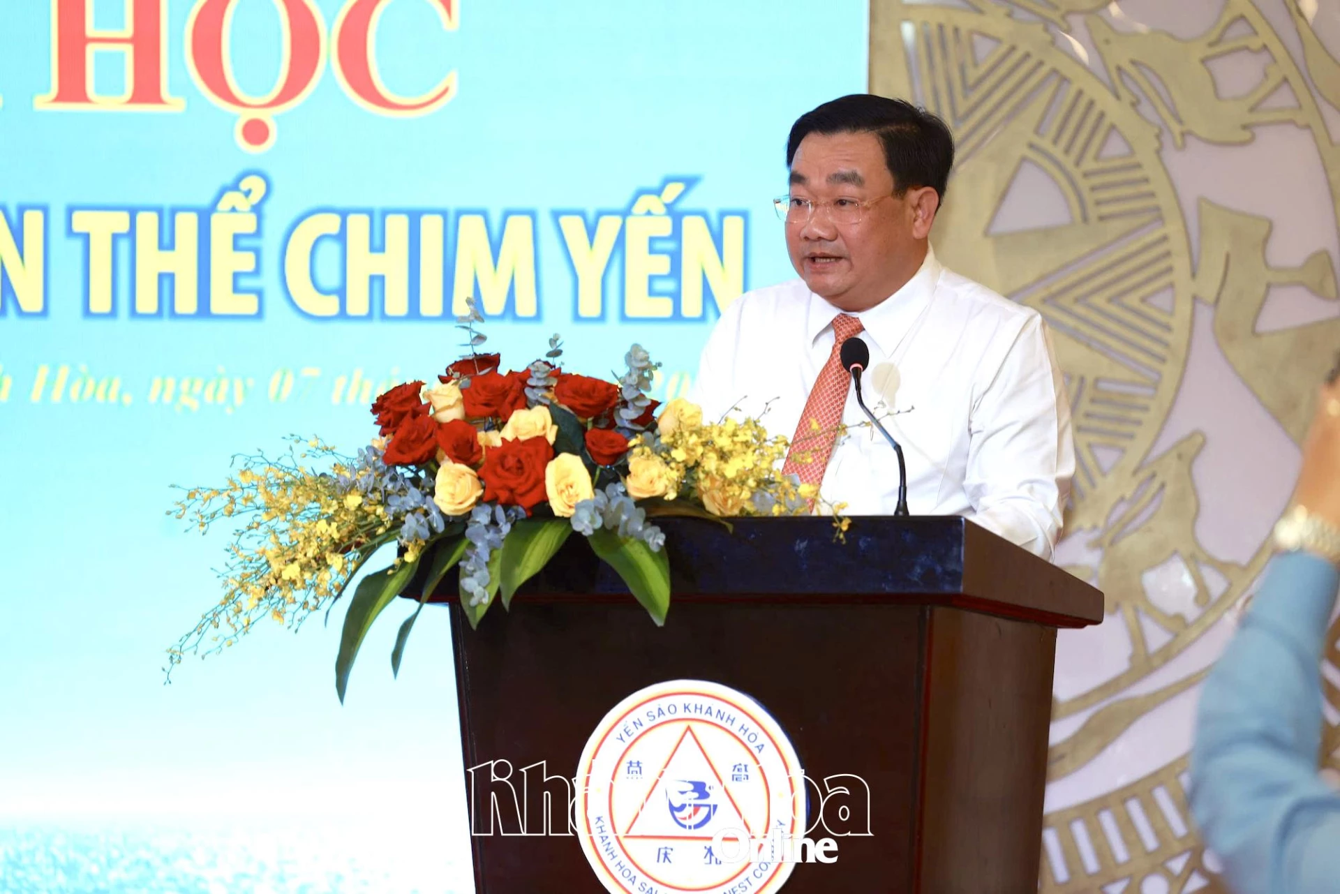 Phát biểu khai mạc hội thảo, Phó Chủ tịch UBND tỉnh Trịnh Minh Hoàng cho biết, nhận thức rõ tầm quan trọng của việc bảo tồn nguồn gen quý hiếm và phát triển ngành hàng yến sào quốc gia theo hướng bền vững, tỉnh Khánh Hòa tổ chức hội thảo với mong muốn tạo diễn đàn để các nhà khoa học, nhà quản lý, doanh nghiệp và các địa phương liên quan cùng trao đổi, chia sẻ những nghiên cứu, kinh nghiệm thực tiễn; thảo luận giải pháp khoa học - công nghệ và quản lý nhằm bảo tồn, phát triển bền vững đàn yến - nguồn tài nguyên thiên nhiên quý báu của quốc gia. Kết quả hội thảo sẽ là cơ sở khoa học quan trọng để các bộ, ngành Trung ương, tỉnh Khánh Hòa và các địa phương liên quan hoàn thiện cơ chế, chính sách, quy hoạch và chương trình hành động quốc gia về bảo tồn và phát triển quần thể chim yến đến năm 2035, tầm nhìn 2050.
