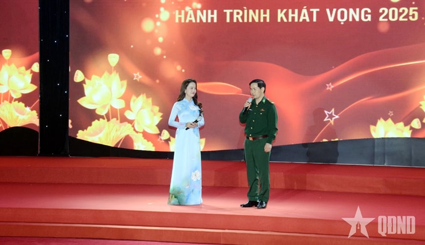 Luc Quang Trung alezredes elvtárs, a Cao Bang Tartományi Katonai Parancsnokság Határőrparancsnokságának Politikai Osztályának politikai vezetője – aki a Cao Bang Tartományi Katonai Parancsnokság Határőrparancsnoksága Politikai Osztályának „ A határ menti emberek szegénységből való kitörésének segítése, az ideiglenes és romos házak felszámolása” modelljét képviseli – közvetlen eszmecserén vett részt a programon . Fotó: qdnd.vn